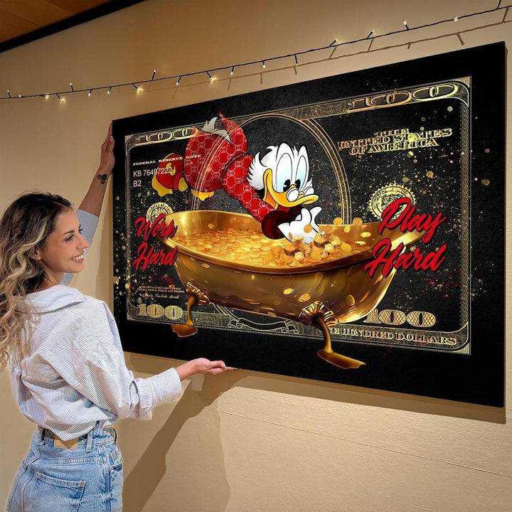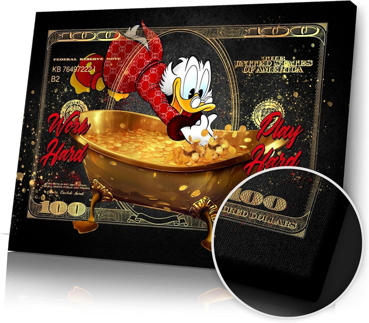 - SETZEN SIE AUF VERLÄSSLICHE FARBEN | Geniessen Sie ihr Dagobert Duck Leinwandbild über viele, viele Jahre. Unser Druckverfahren zeichnet sich durch eine überlegene Farbechtheit aus, die sich über Jahre hält und sich vor allem für grosse Bilder für
