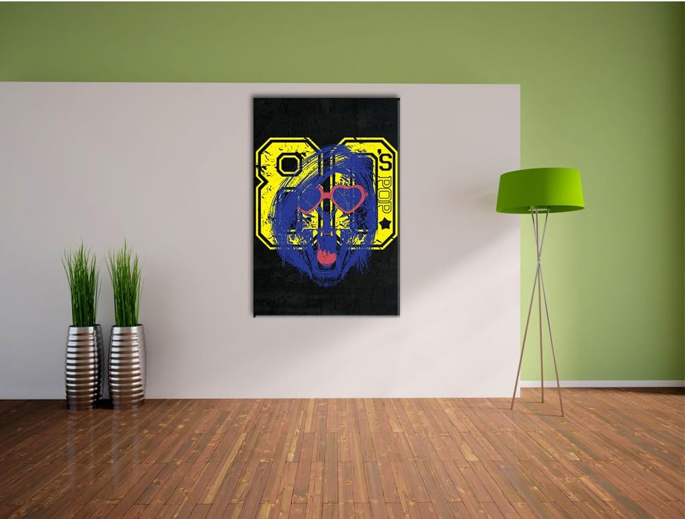 Dark 80s pop black Bild auf Leinwand, XXL riesige Bilder fertig gerahmt mit Keilrahmen, Kunstdruck a