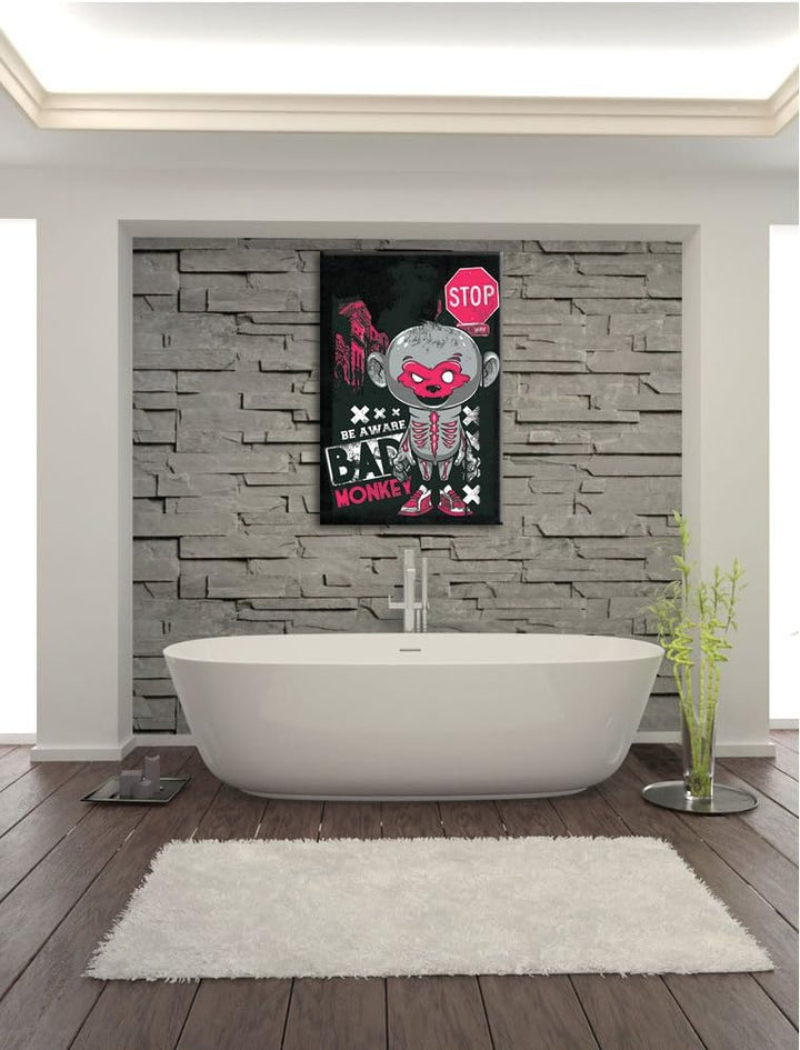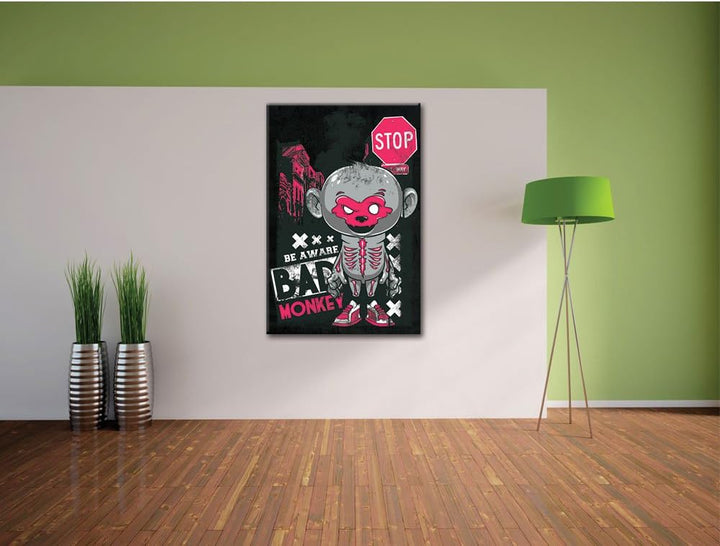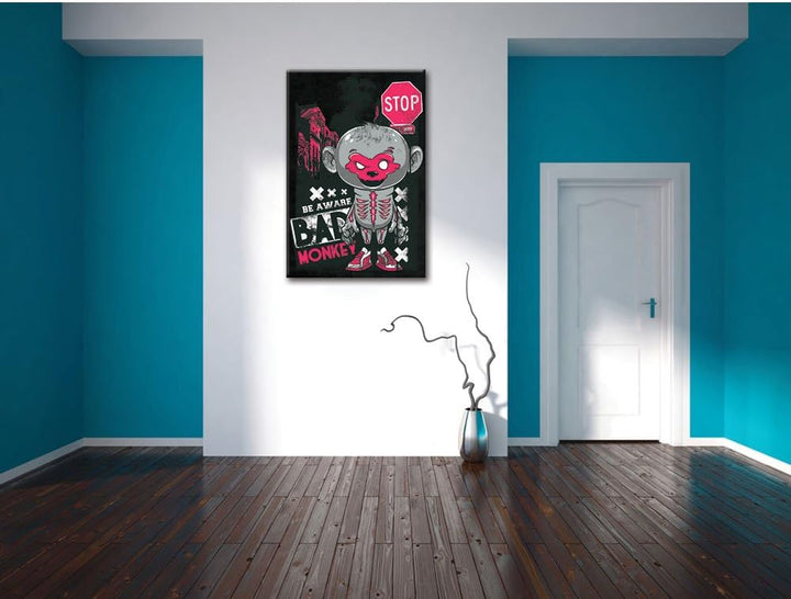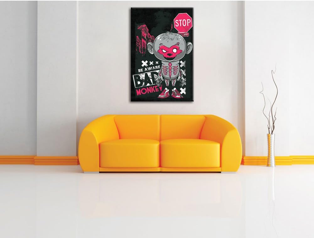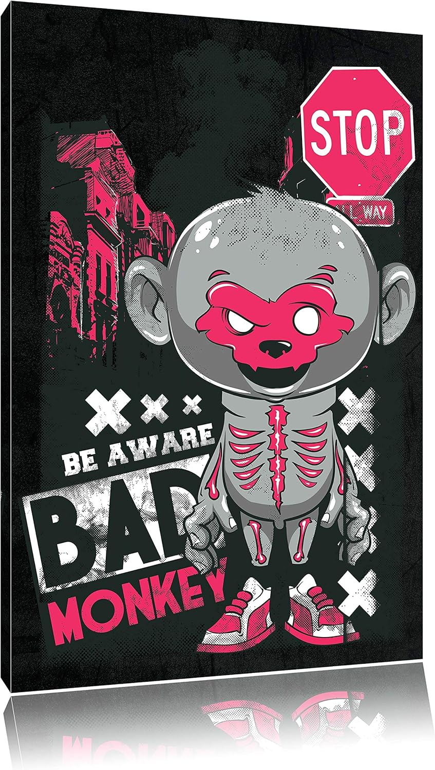Dark Bad monkey black Bild auf Leinwand, XXL riesige Bilder fertig gerahmt mit Keilrahmen, Kunstdruc