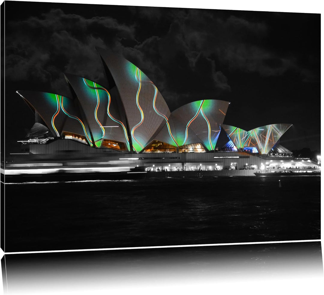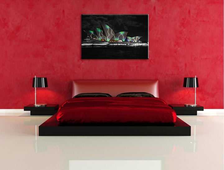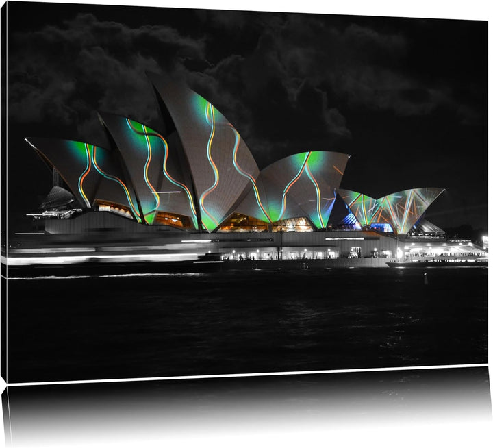 Dark beeindruckende Sydney Opera House grüne Beleuchtung schwarz/weiss auf Leinwand, XXL riesige Bil