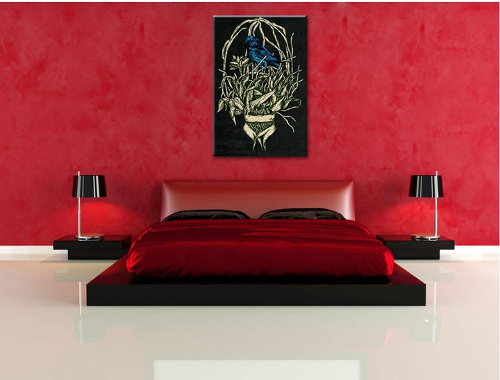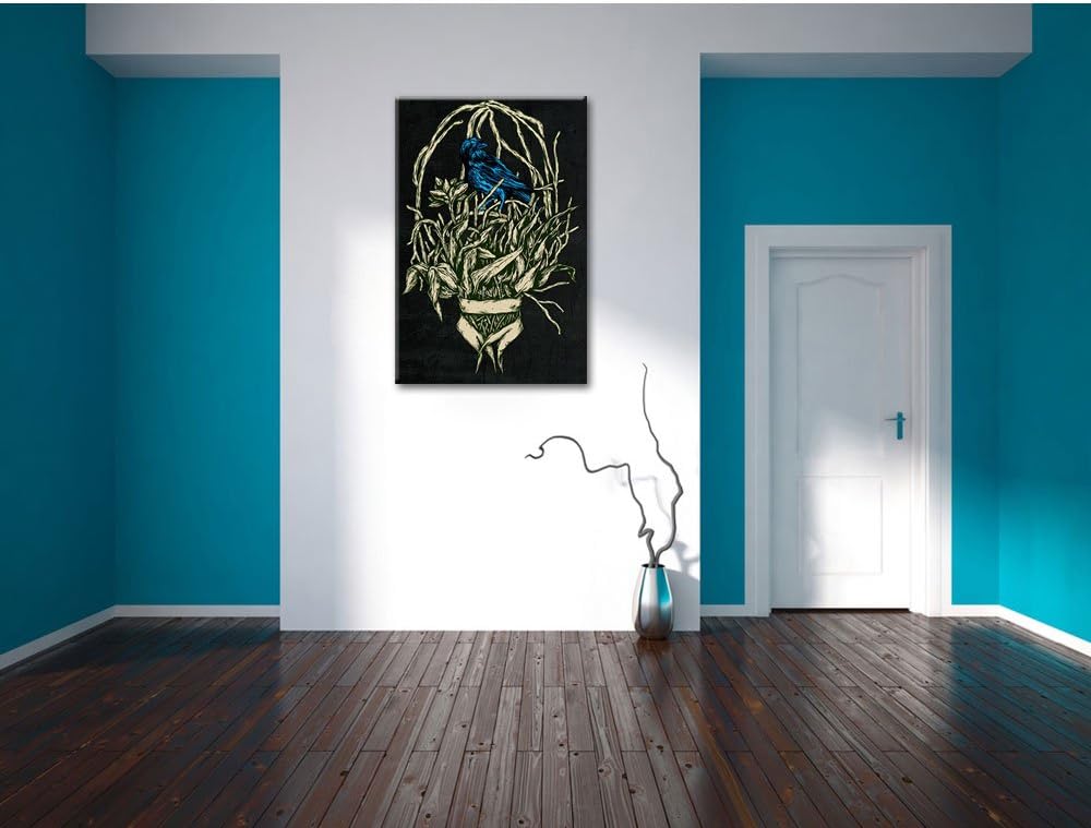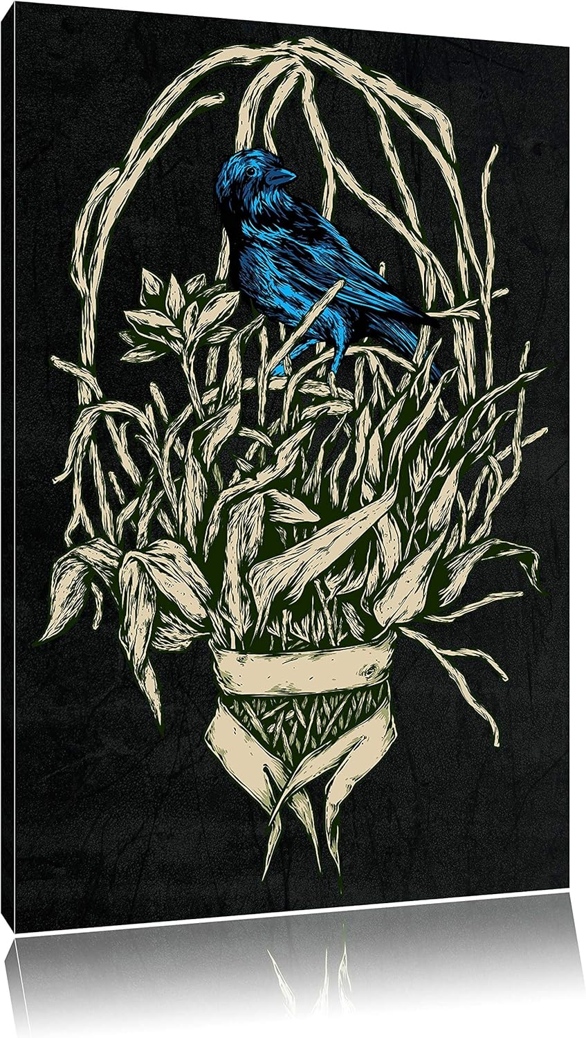 Dark Blue Bird black Bild auf Leinwand, XXL riesige Bilder fertig gerahmt mit Keilrahmen, Kunstdruck