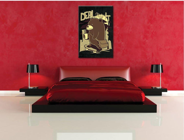 Dark Deal with it black Bild auf Leinwand, XXL riesige Bilder fertig gerahmt mit Keilrahmen, Kunstdr