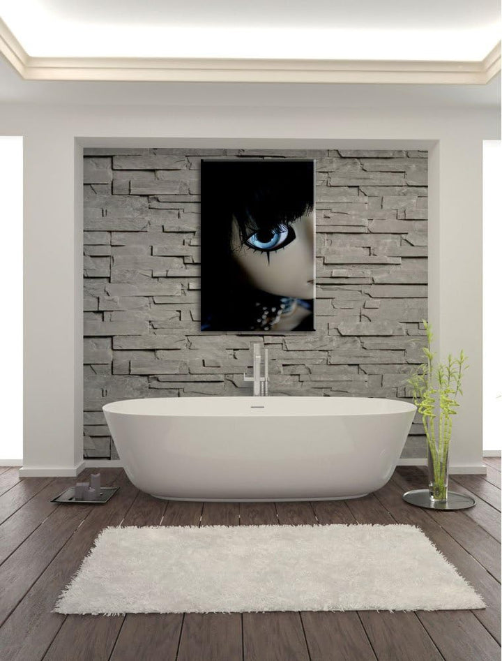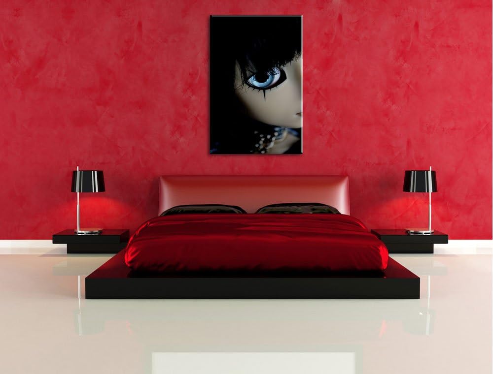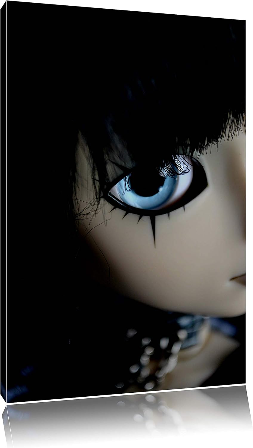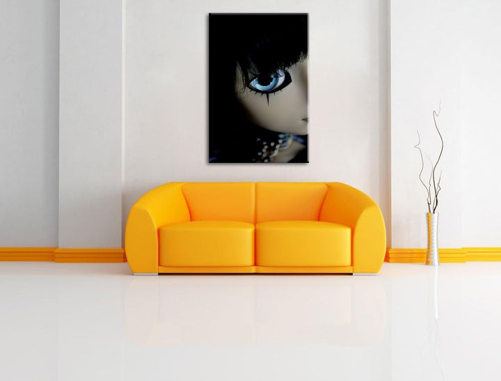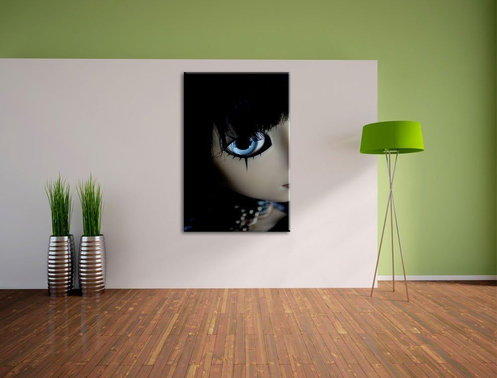 Dark düstere Pullip mit strahlend blaün Augen Leinwand, XXL riesige Bilder fertig gerahmt mit Keilra
