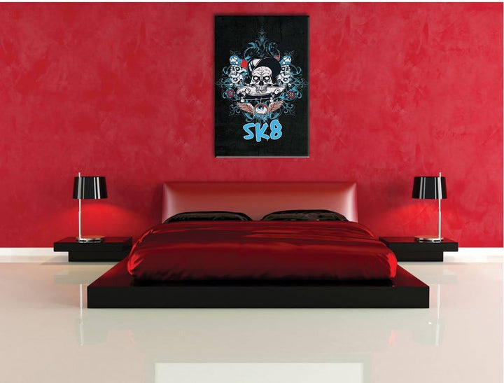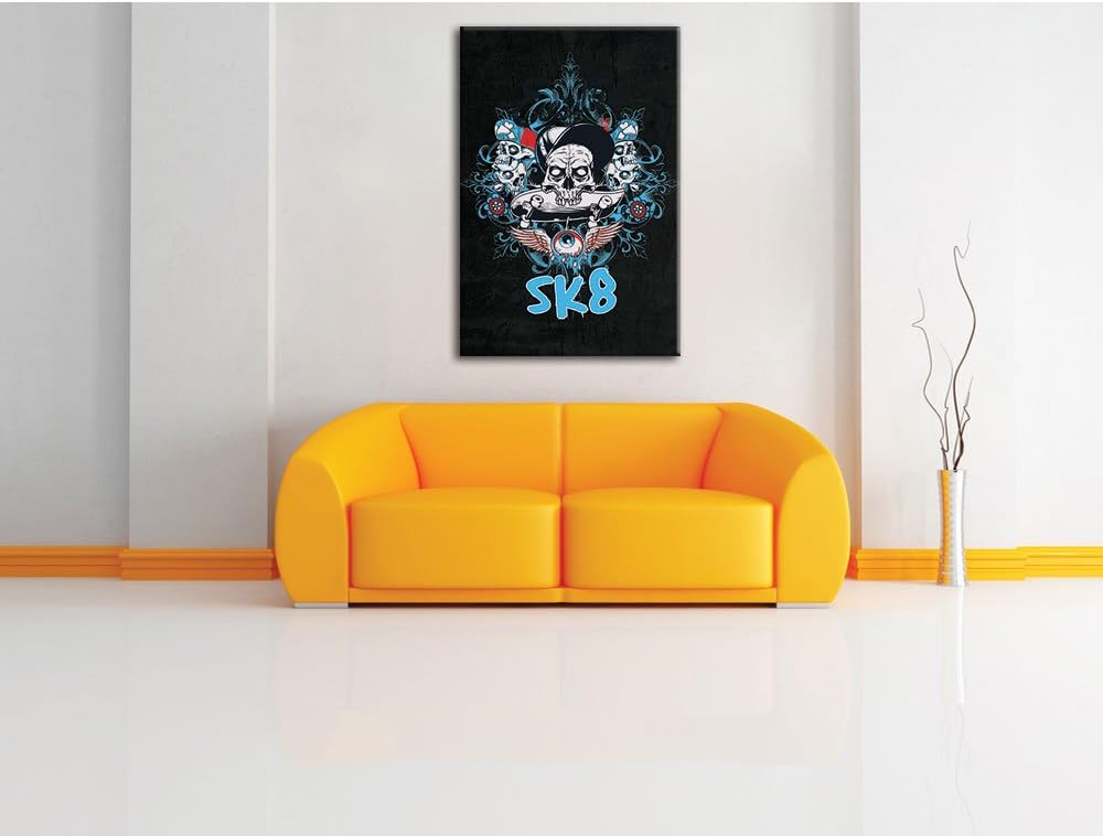 Dark Everything is sk8 black Bild auf Leinwand, XXL riesige Bilder fertig gerahmt mit Keilrahmen, Ku