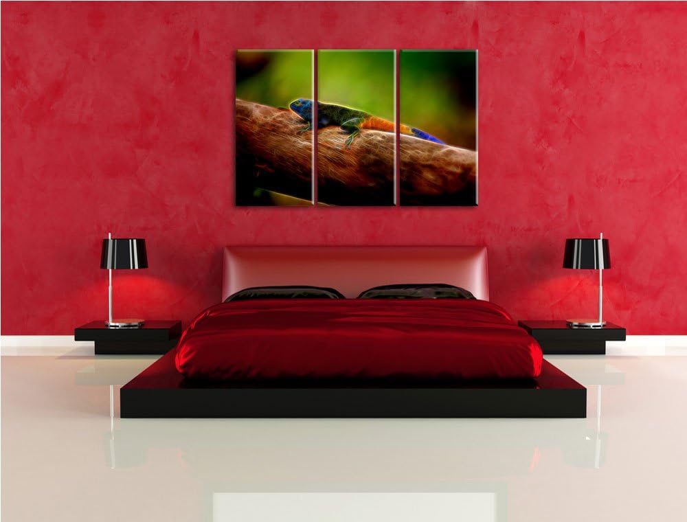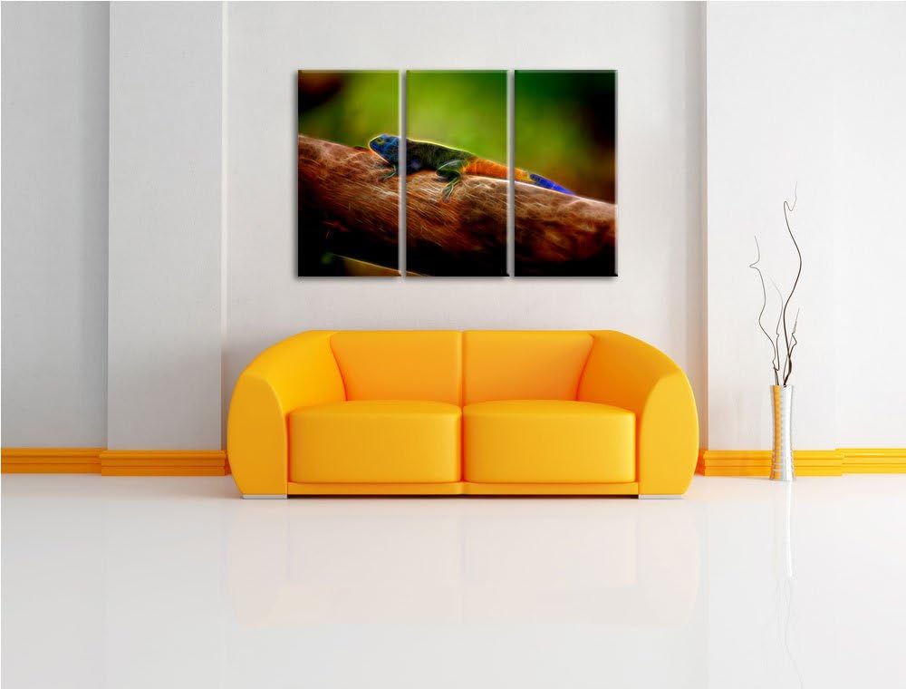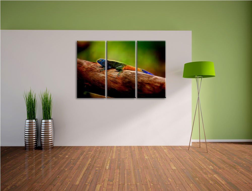 Dark farbenfrohe Eidechse NewArt 3-Teiler Leinwandbild 120x80 Bild auf Leinwand, XXL riesige Bilder