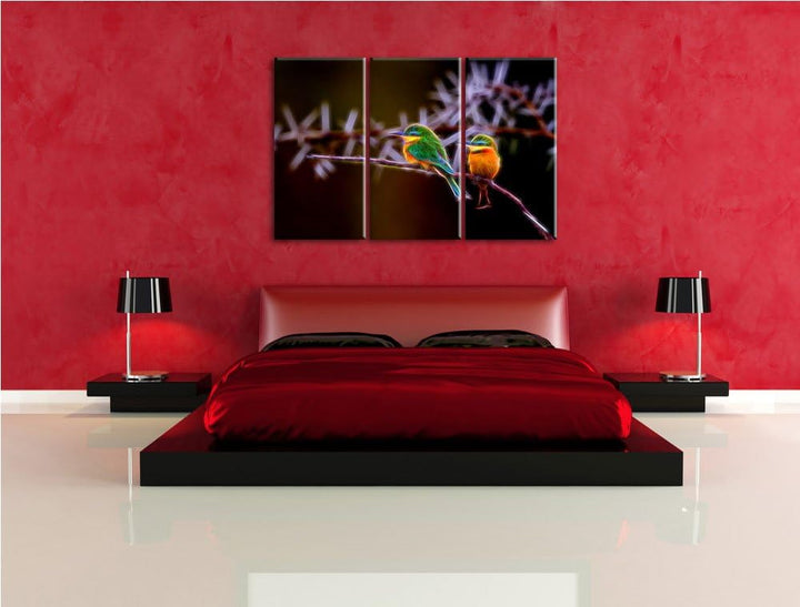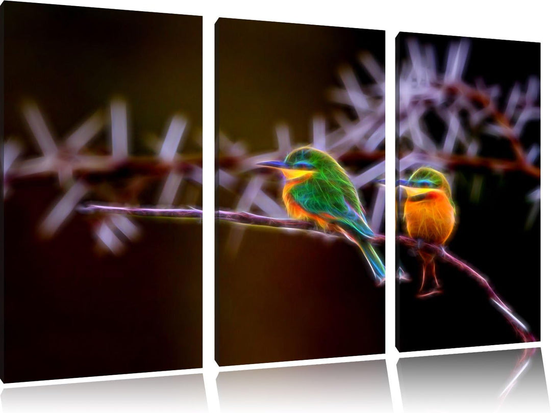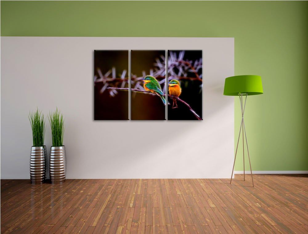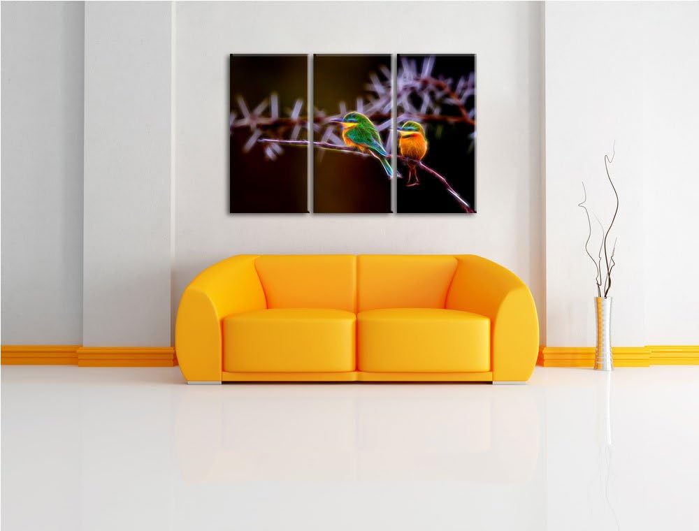 Dark farbenfrohe exotische Vögel auf Ast NewArt 3-Teiler Leinwandbild 120x80 Bild auf Leinwand, XXL