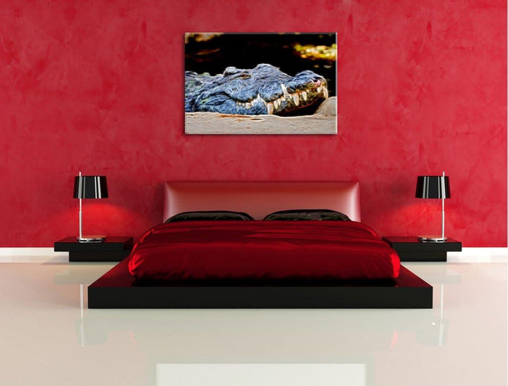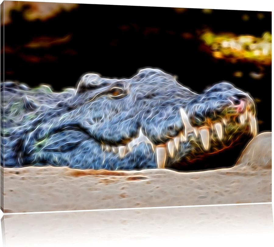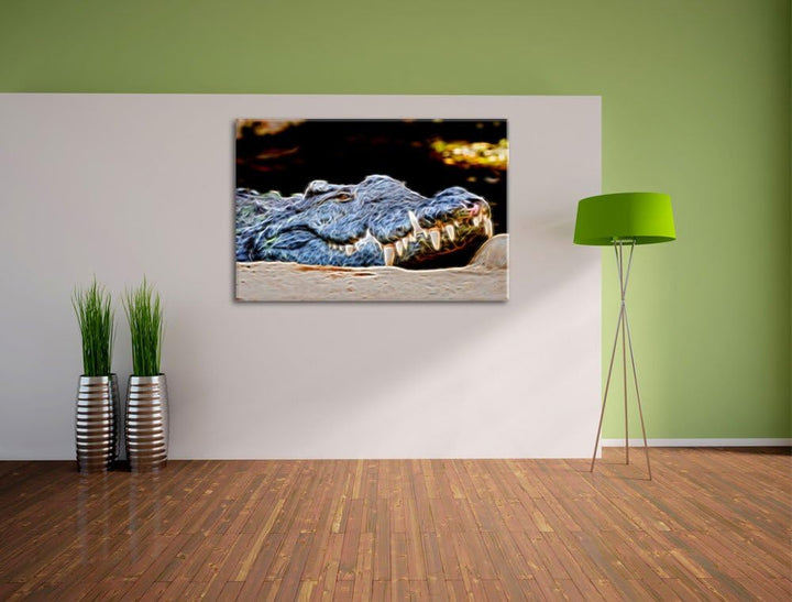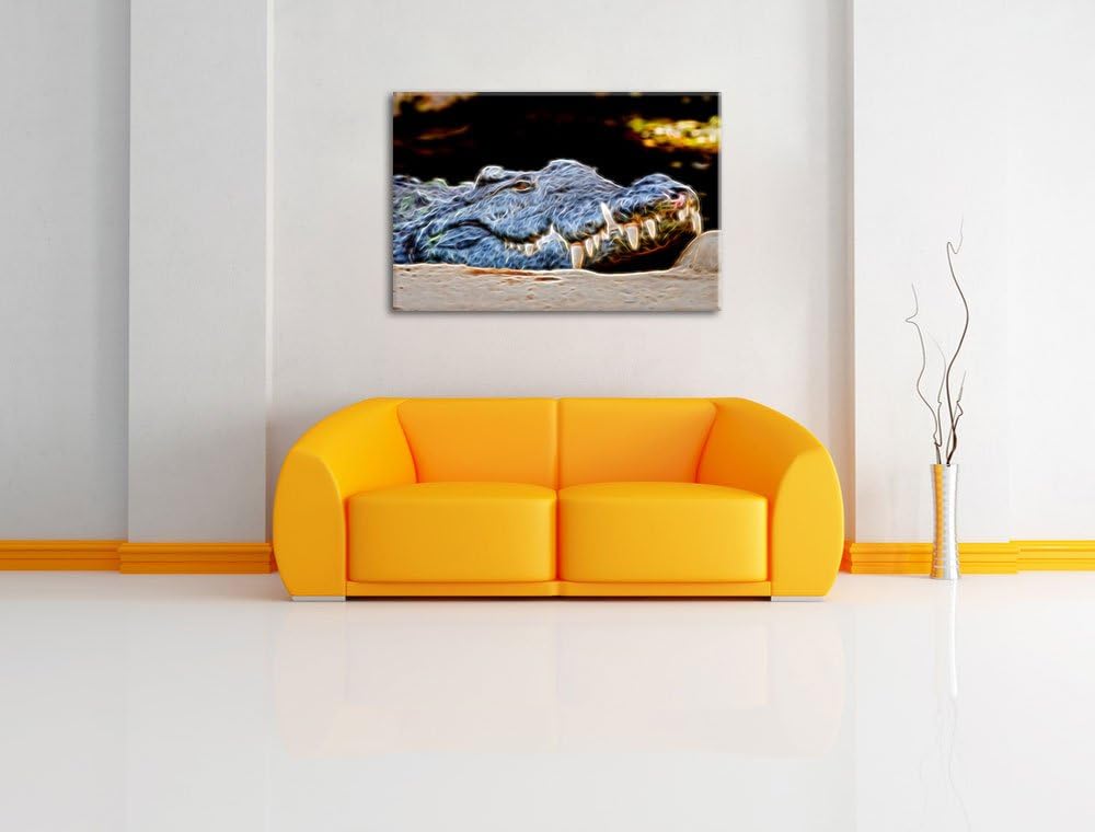 Dark gigantisches Krokodil Deluxe Format: 100x70 cm auf Leinwand, XXL riesige Bilder fertig gerahmt