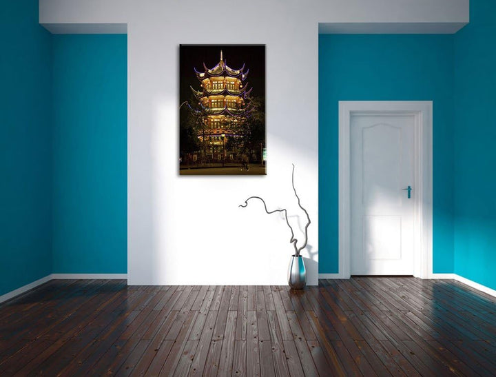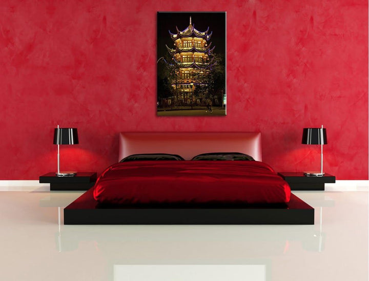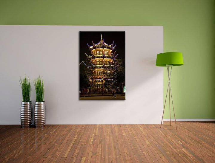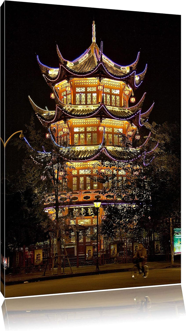 Dark grossartiges chinesisches Gebäude Leinwand, XXL riesige Bilder fertig gerahmt mit Keilrahmen, K