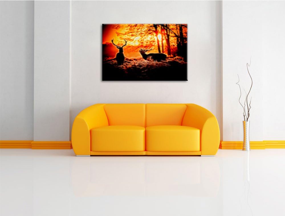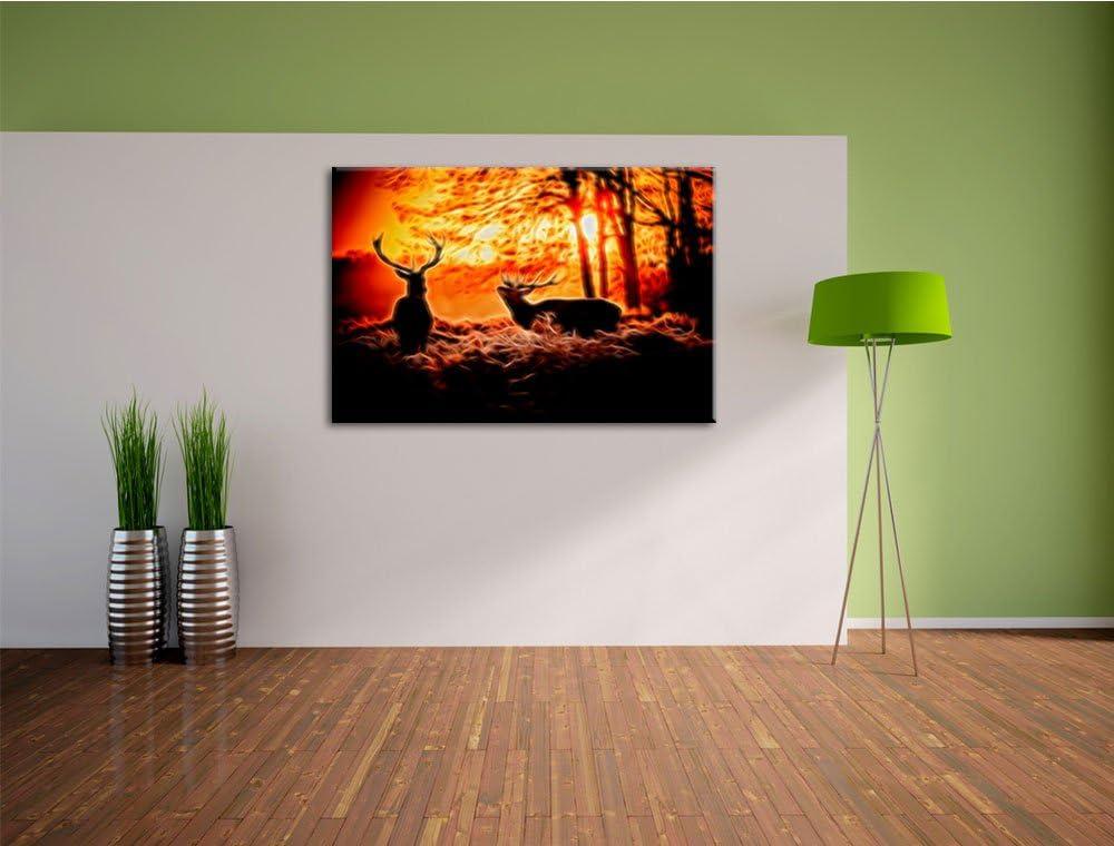 Dark Hirsch Rivalen kämpfen Deluxe Format: 100x70 cm auf Leinwand, XXL riesige Bilder fertig gerahmt
