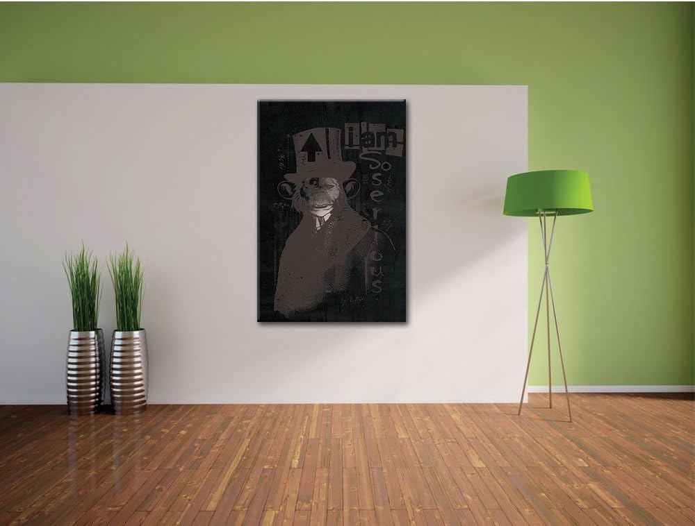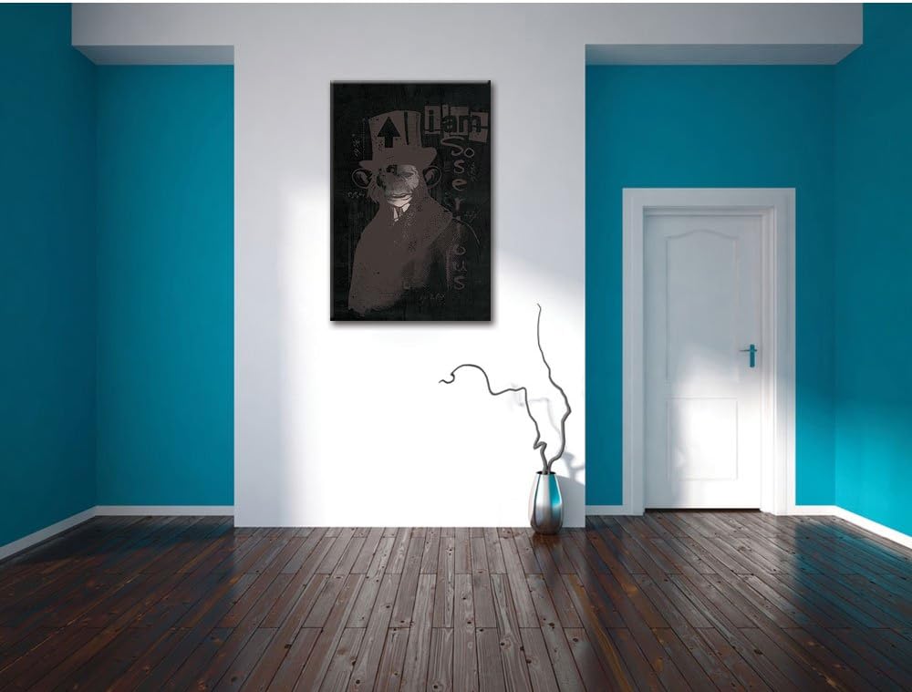 Dark I am serious black Bild auf Leinwand, XXL riesige Bilder fertig gerahmt mit Keilrahmen, Kunstdr