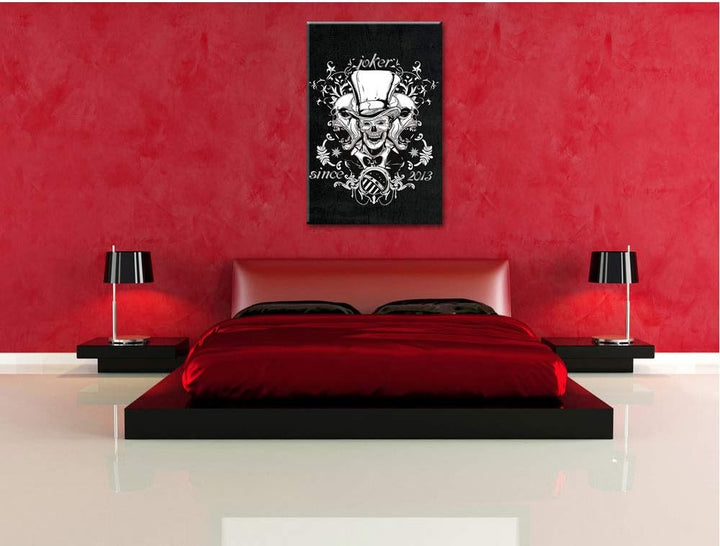 Dark Joker black Leinwandbild Bild auf Leinwand, XXL riesige Bilder fertig gerahmt mit Keilrahmen, K