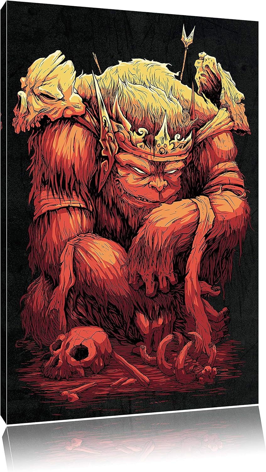 Dark King-Ape black Bild auf Leinwand, XXL riesige Bilder fertig gerahmt mit Keilrahmen, Kunstdruck