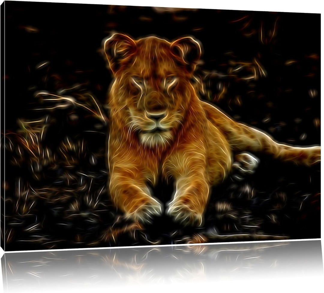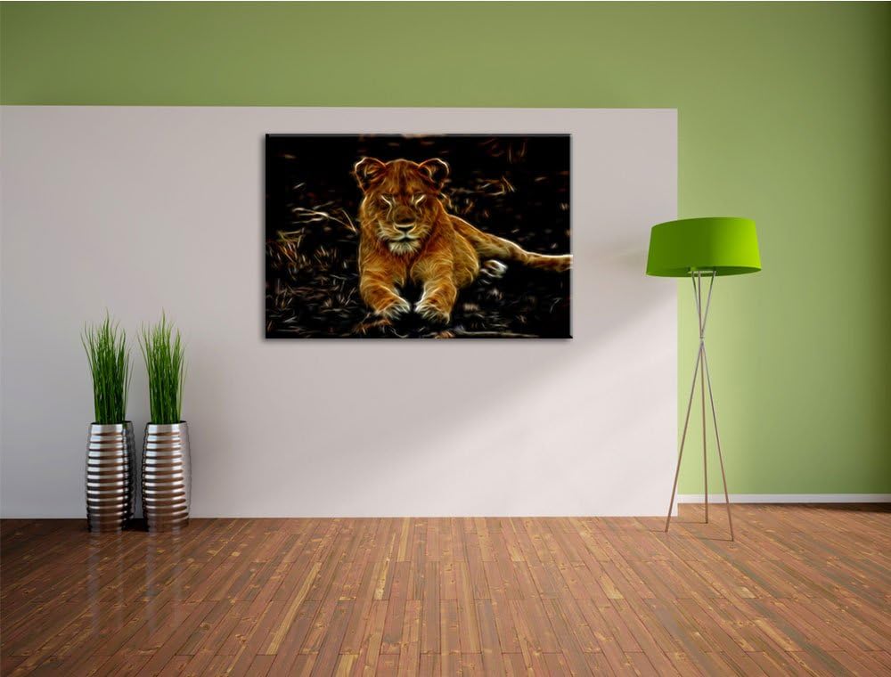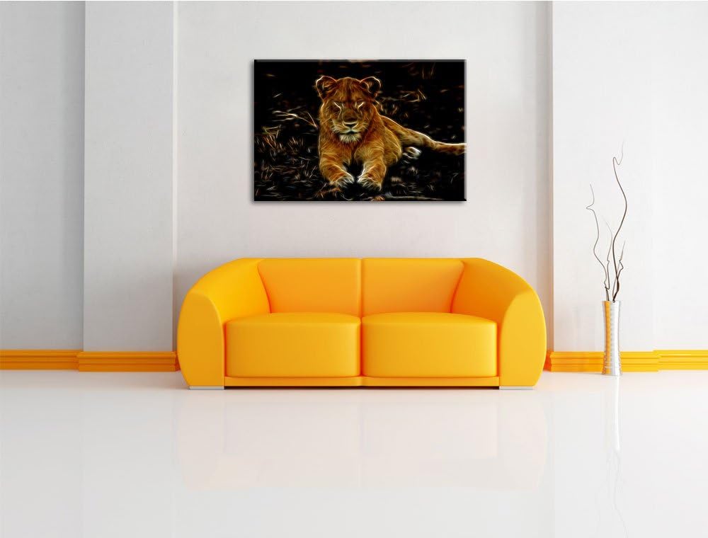Dark Löwin ruht auf Boden Deluxe Format: 100x70 cm auf Leinwand, XXL riesige Bilder fertig gerahmt m