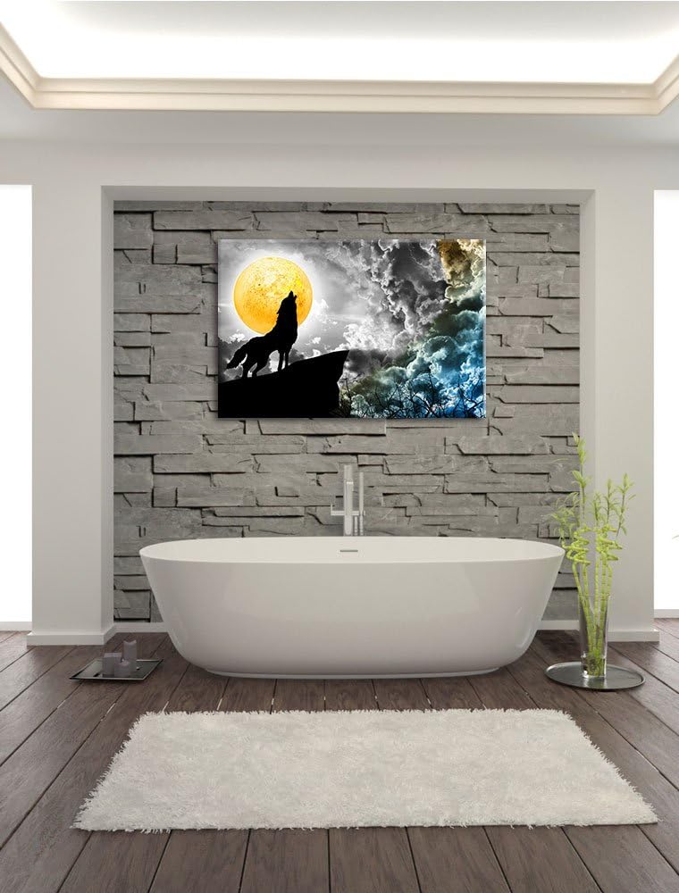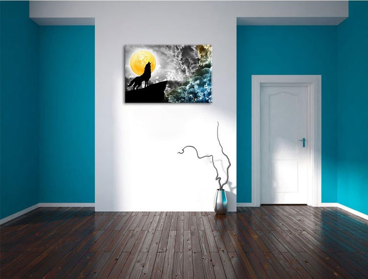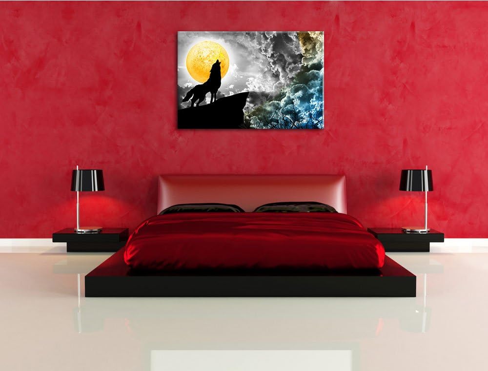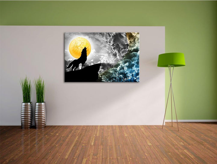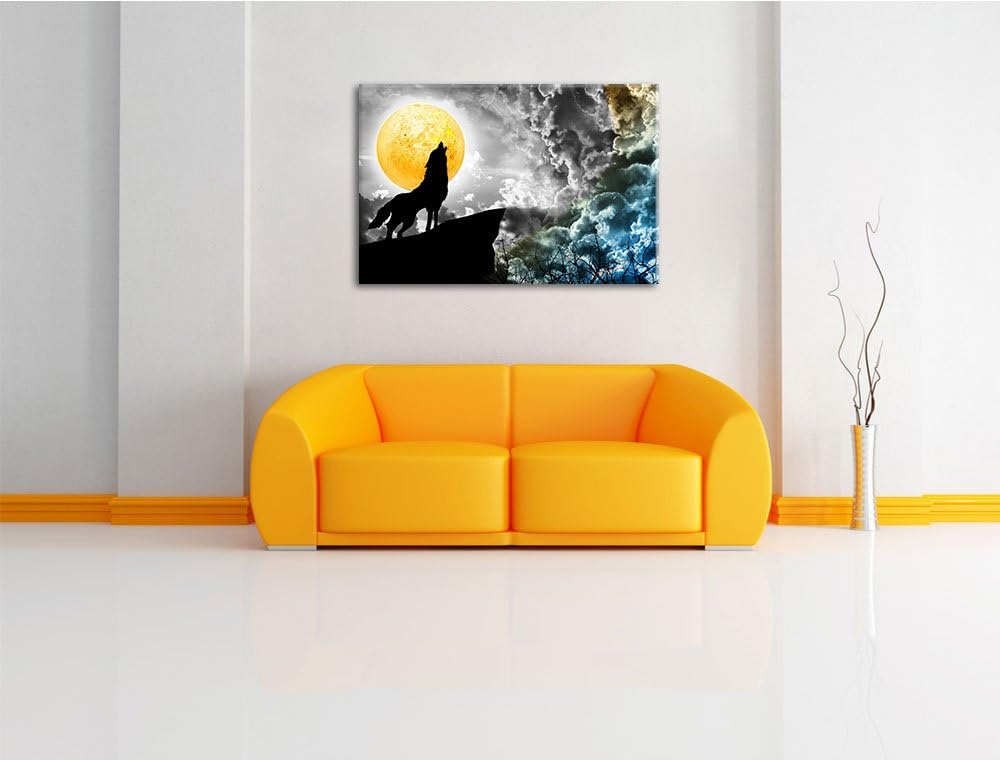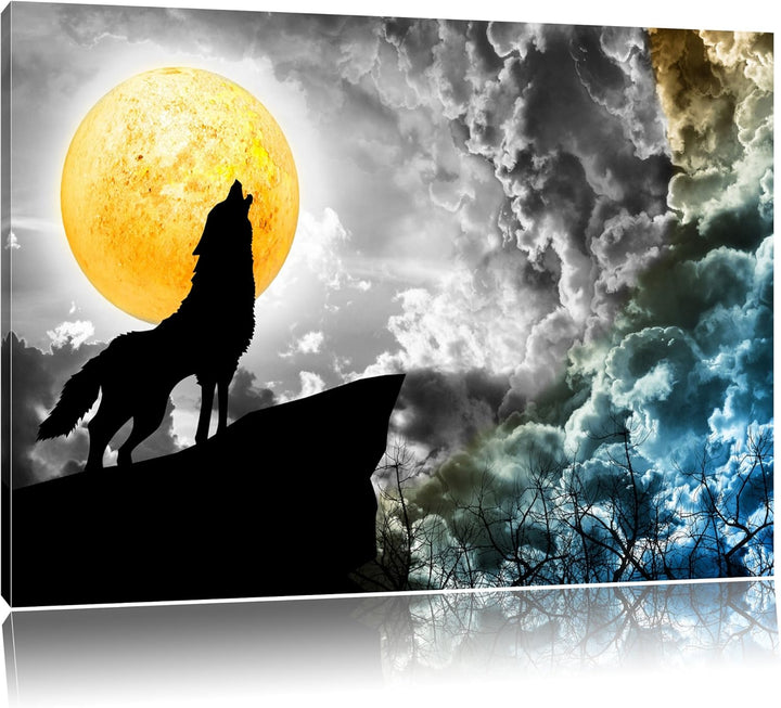 Dark Mystischer Wolf im Vollmond schwarz/weiss Format: 100x70 cm auf Leinwand, XXL riesige Bilder fe