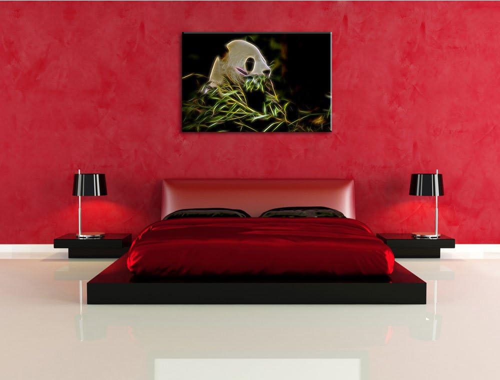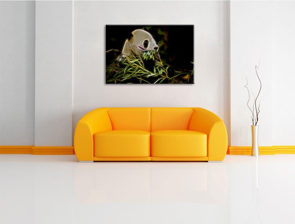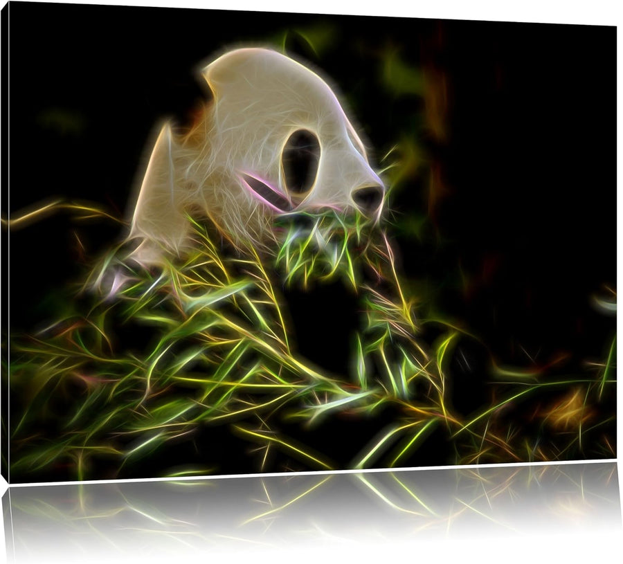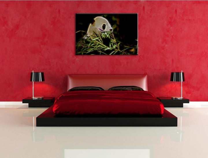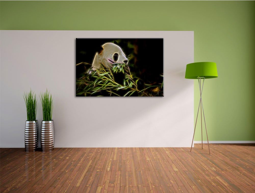 Dark Pandabär beim Fressen Spezial Format: 100x70 cm auf Leinwand, XXL riesige Bilder fertig gerahmt