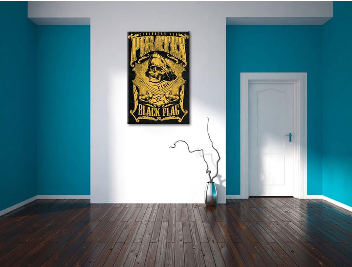 Dark Panique black Bild auf Leinwand, XXL riesige Bilder fertig gerahmt mit Keilrahmen, Kunstdruck a
