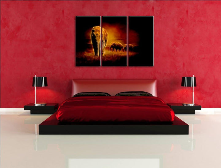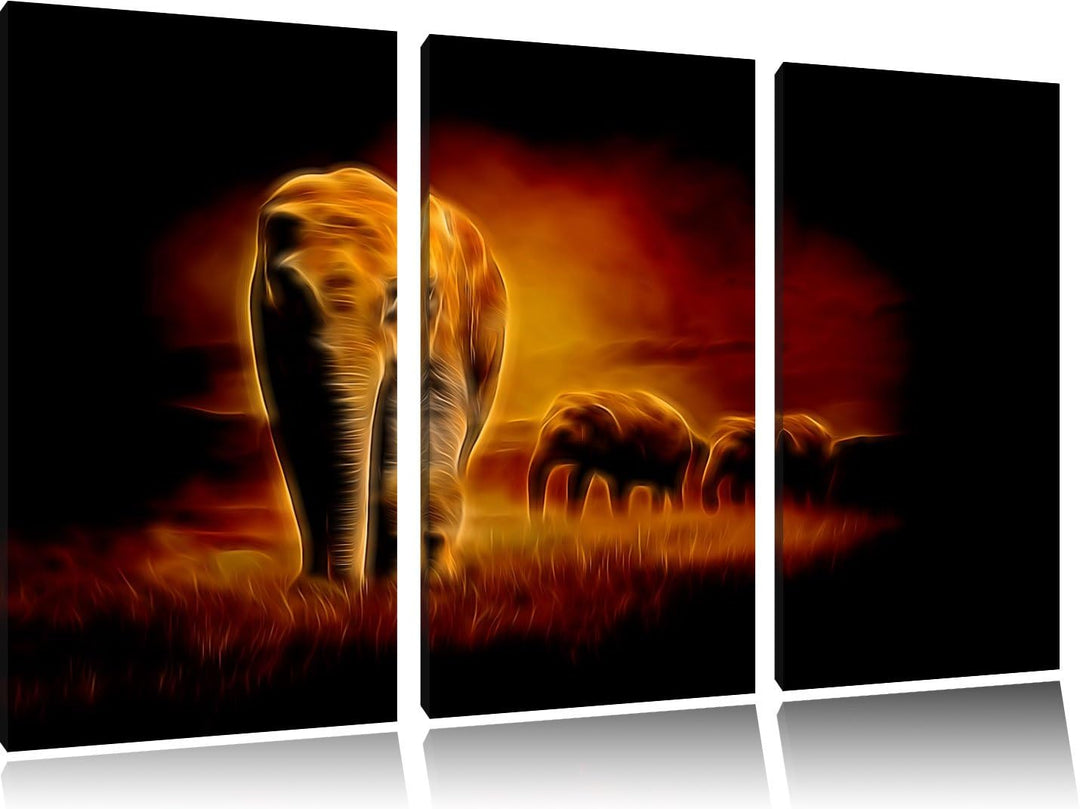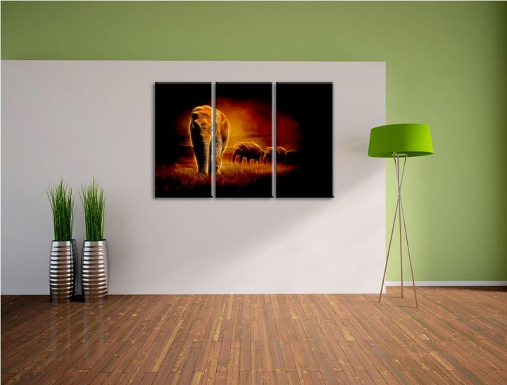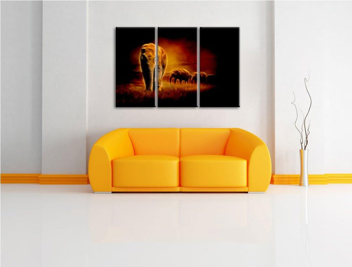 Dark Prächtige Elefanten in Steppe Spezial 3-Teiler Leinwandbild 120x80 Bild auf Leinwand, XXL riesi