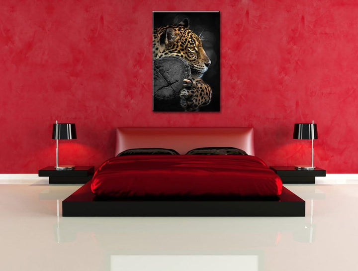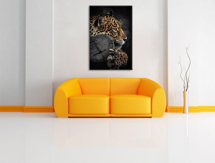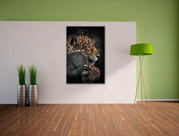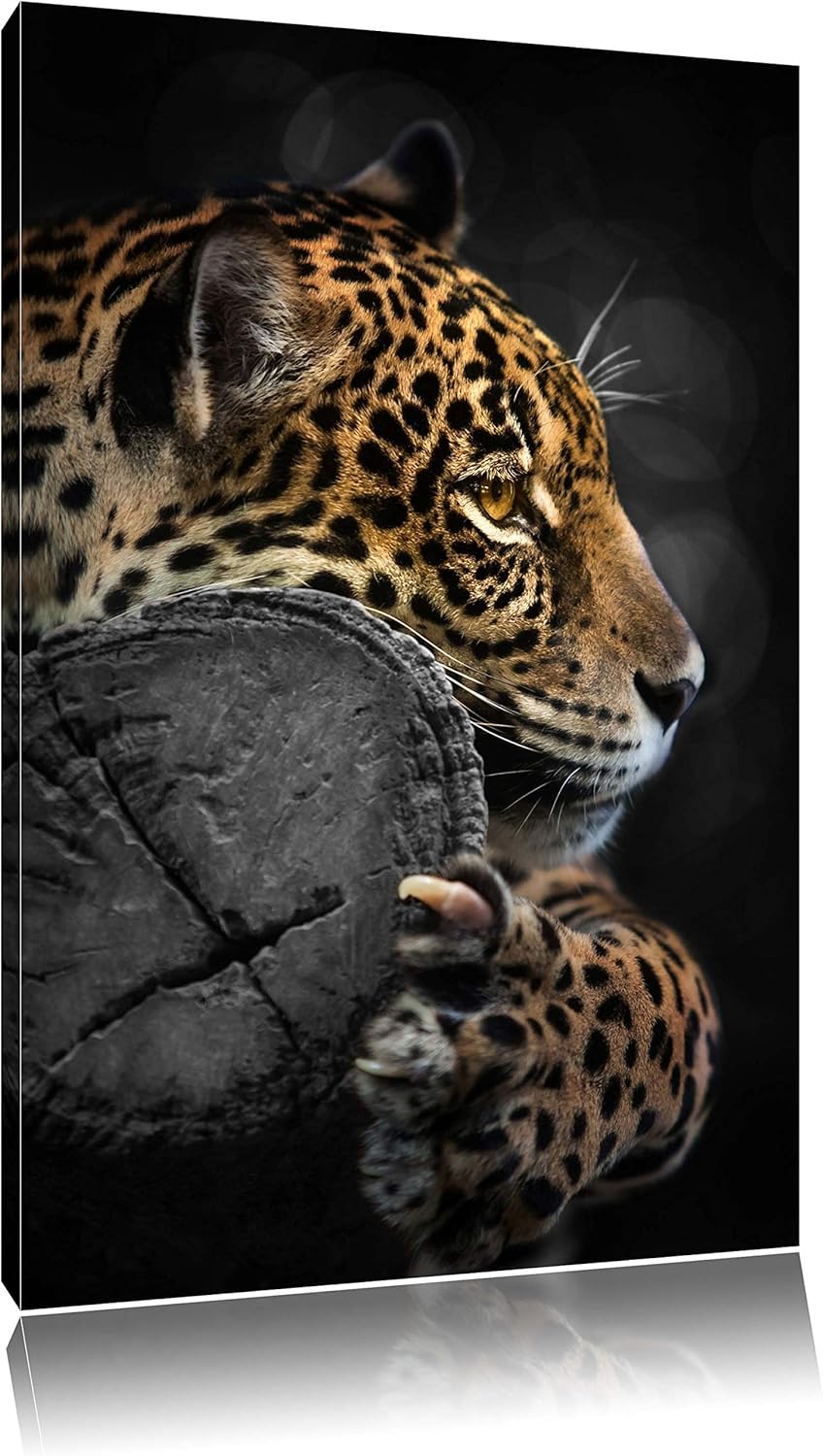 Dark prächtiger Leopard auf Stamm schwarz/weiss Format: 100x70auf Leinwand, XXL riesige Bilder ferti