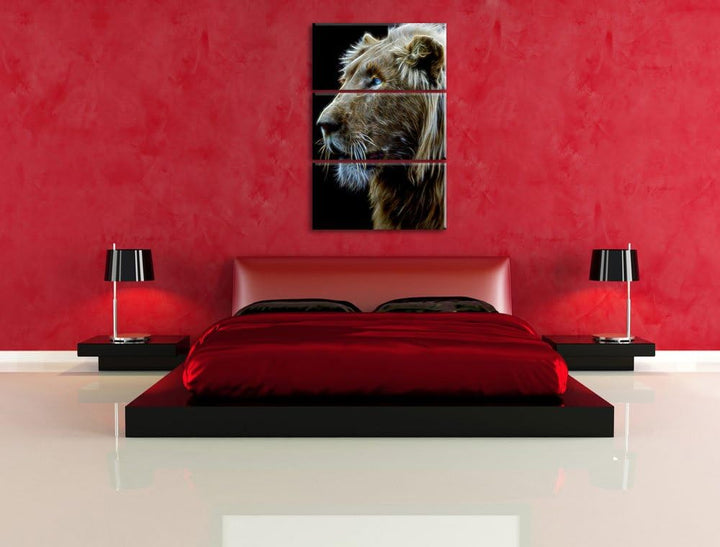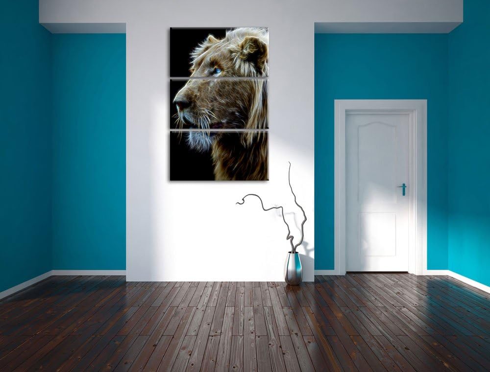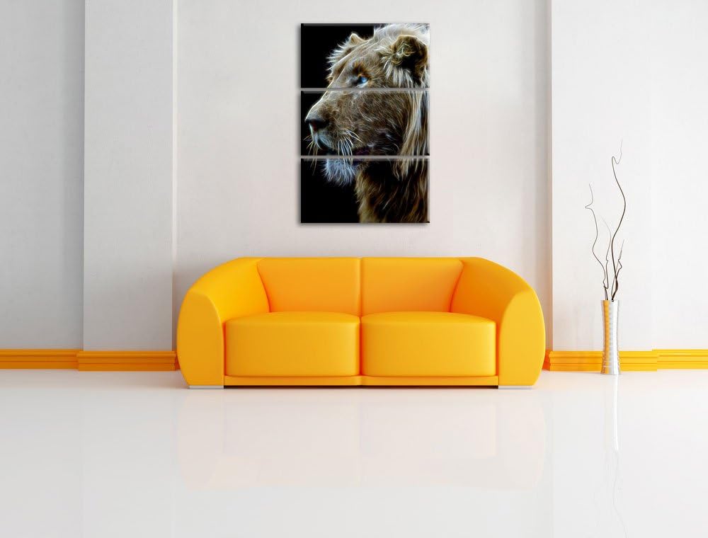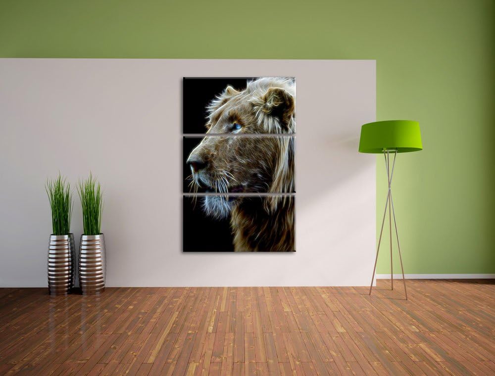 Dark prächtiger weisser Löwe Spezial 3-Teiler Leinwandbild 120x80 Bild auf Leinwand, XXL riesige Bil