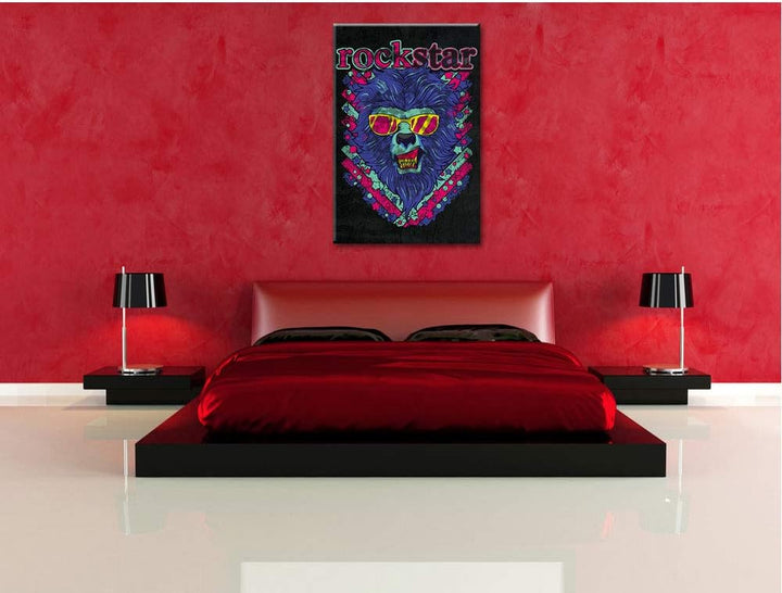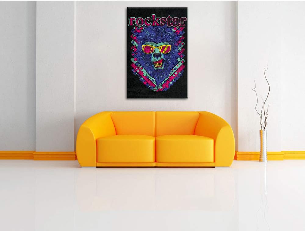 Dark Rockstar-lion black Leinwandbild Bild auf Leinwand, XXL riesige Bilder fertig gerahmt mit Keilr