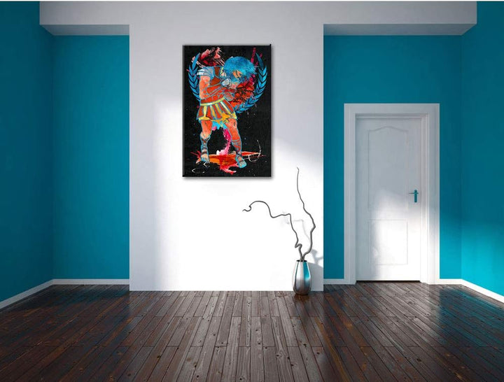 Dark Roman Combat black Leinwand, XXL riesige Bilder fertig gerahmt mit Keilrahmen, Kunstdruck auf W
