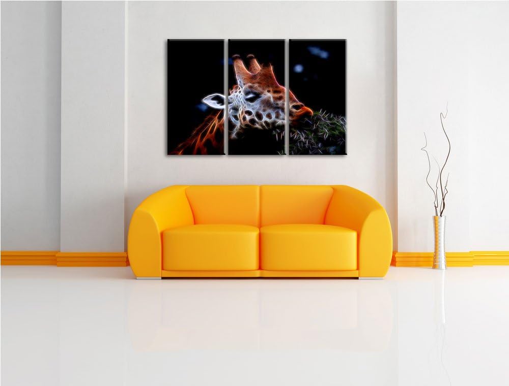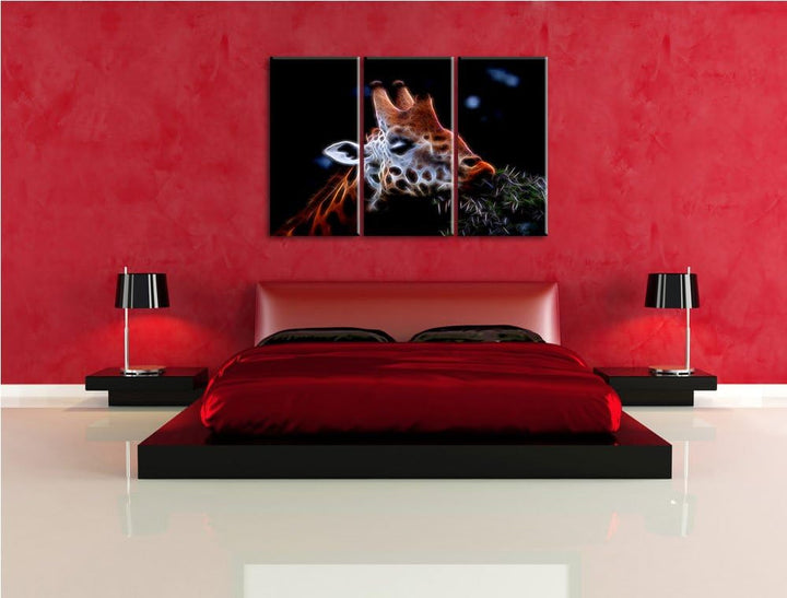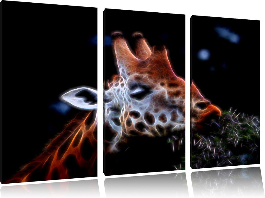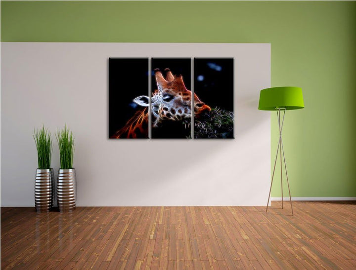 Dark schöne Giraffe beim Fressen NewArt 3-Teiler Leinwandbild 120x80 Bild auf Leinwand, XXL riesige