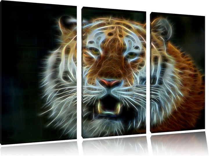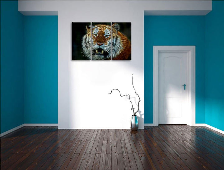 Dark Tiger mit offenem Maul NewArt 3-Teiler Leinwandbild 120x80 Bild auf Leinwand, XXL riesige Bilde