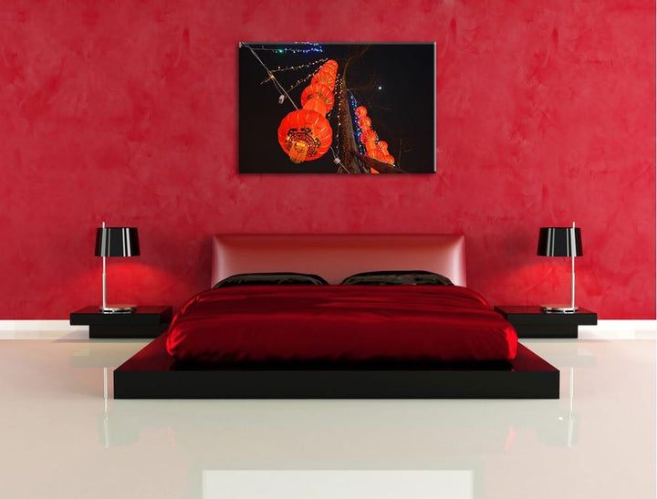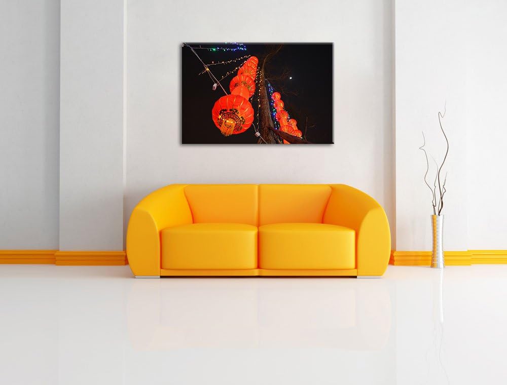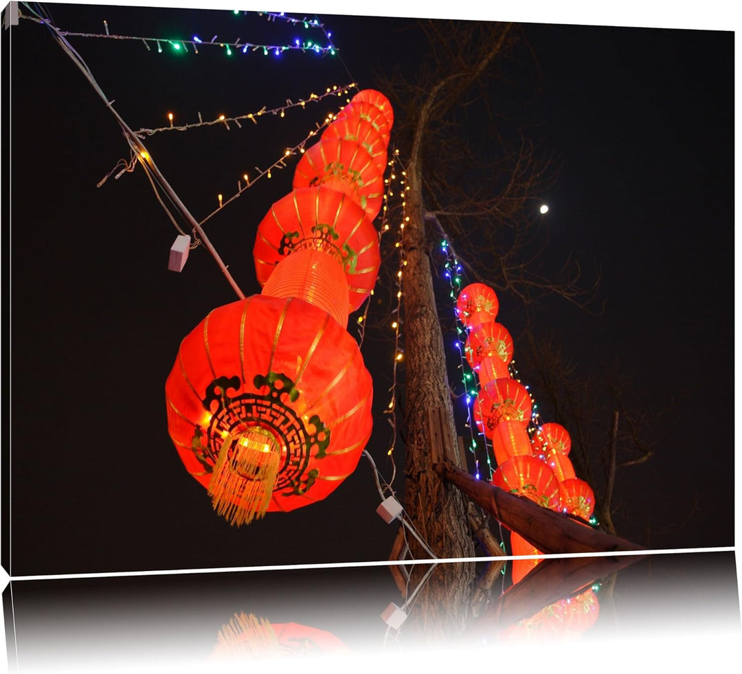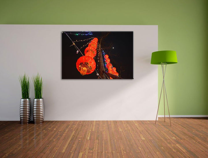 Dark traditionelle chinesische Lampions Leinwand, XXL riesige Bilder fertig gerahmt mit Keilrahmen,