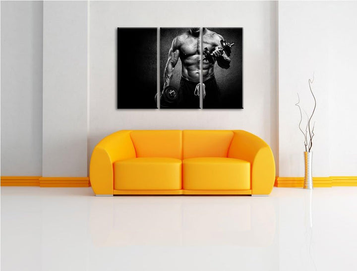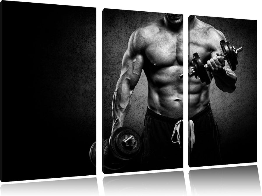 Dark Trainierender Bodybuilder schwarz/weiss 3-Teiler Leinwandbild 120x80 Bild auf Leinwand, XXL rie