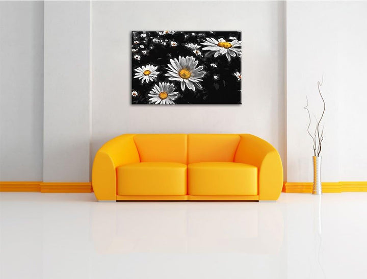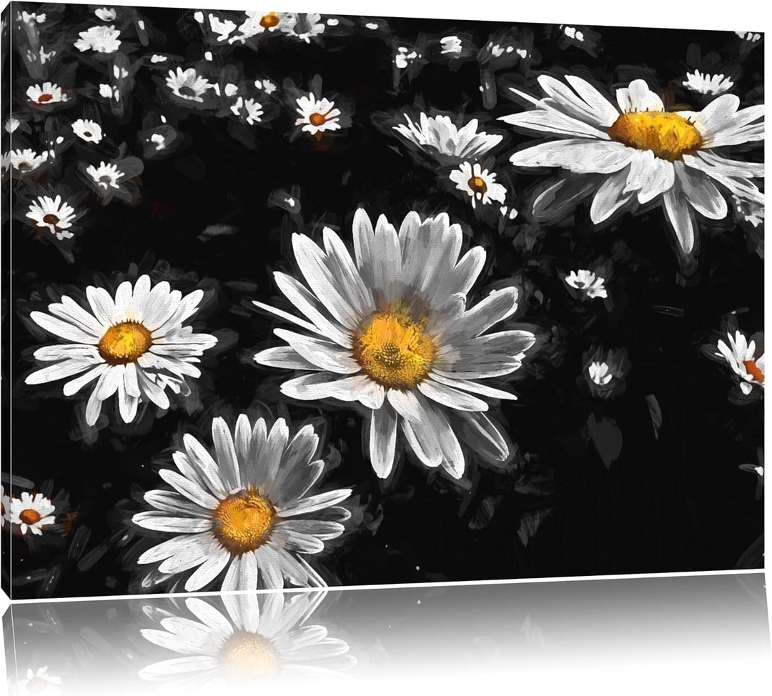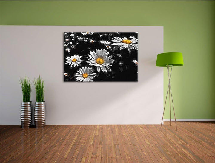 Dark viele kleine Margariten schwarz/weiss Deluxe Format: 120x80 cm auf Leinwand, XXL riesige Bilder