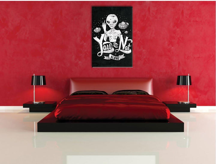Dark You are not alone black Bild auf Leinwand, XXL riesige Bilder fertig gerahmt mit Keilrahmen, Ku