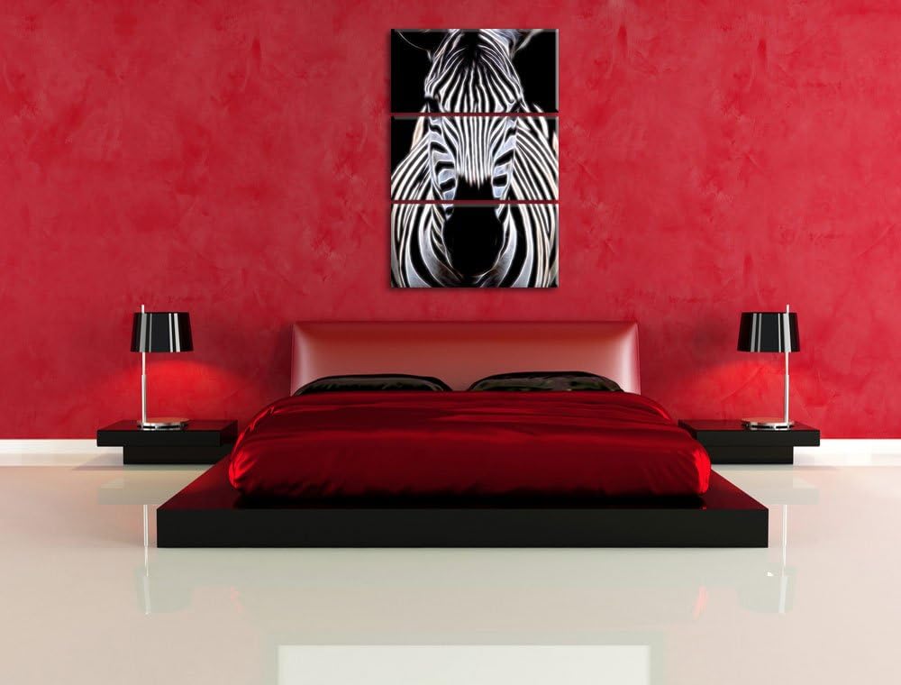 Dark Zebra Porträt Spezial 3-Teiler Leinwandbild 120x80 Bild auf Leinwand, XXL riesige Bilder fertig