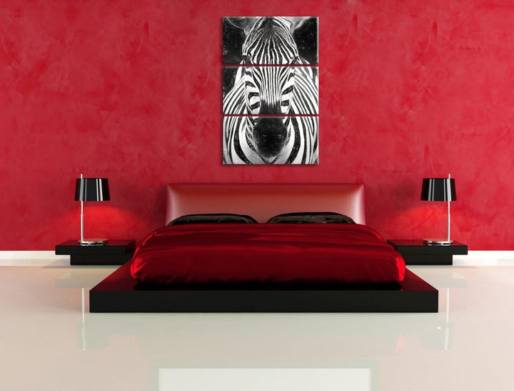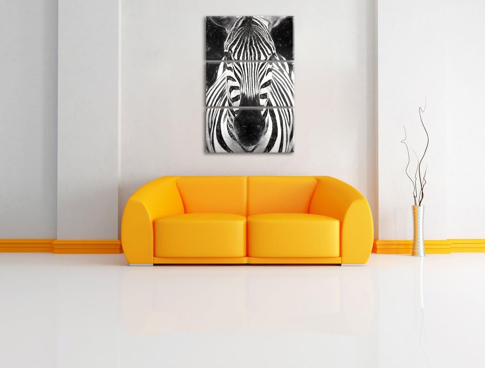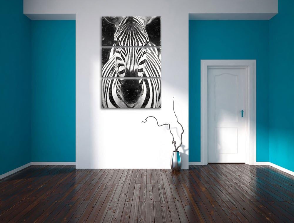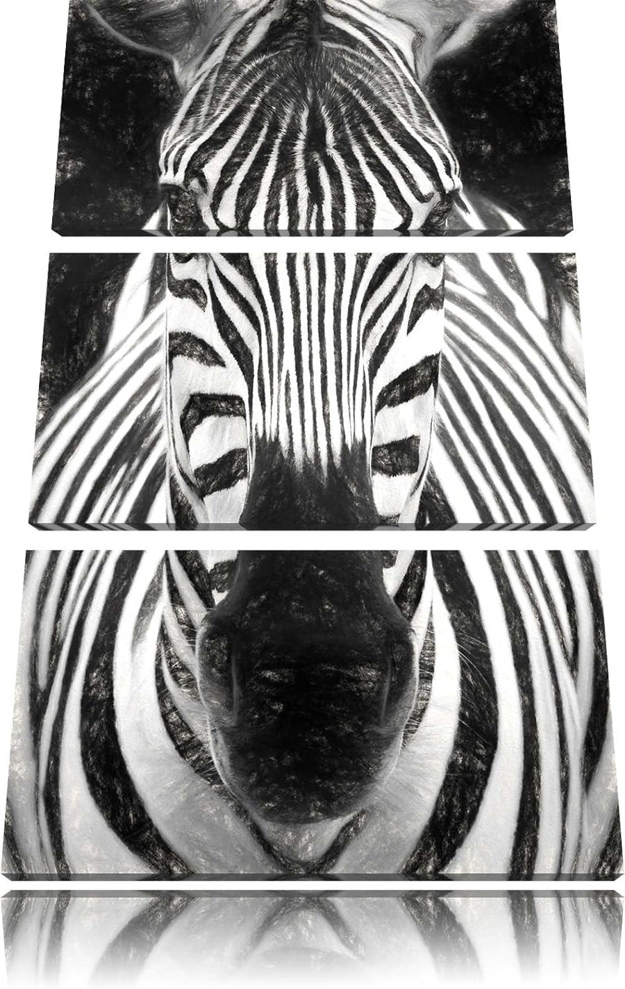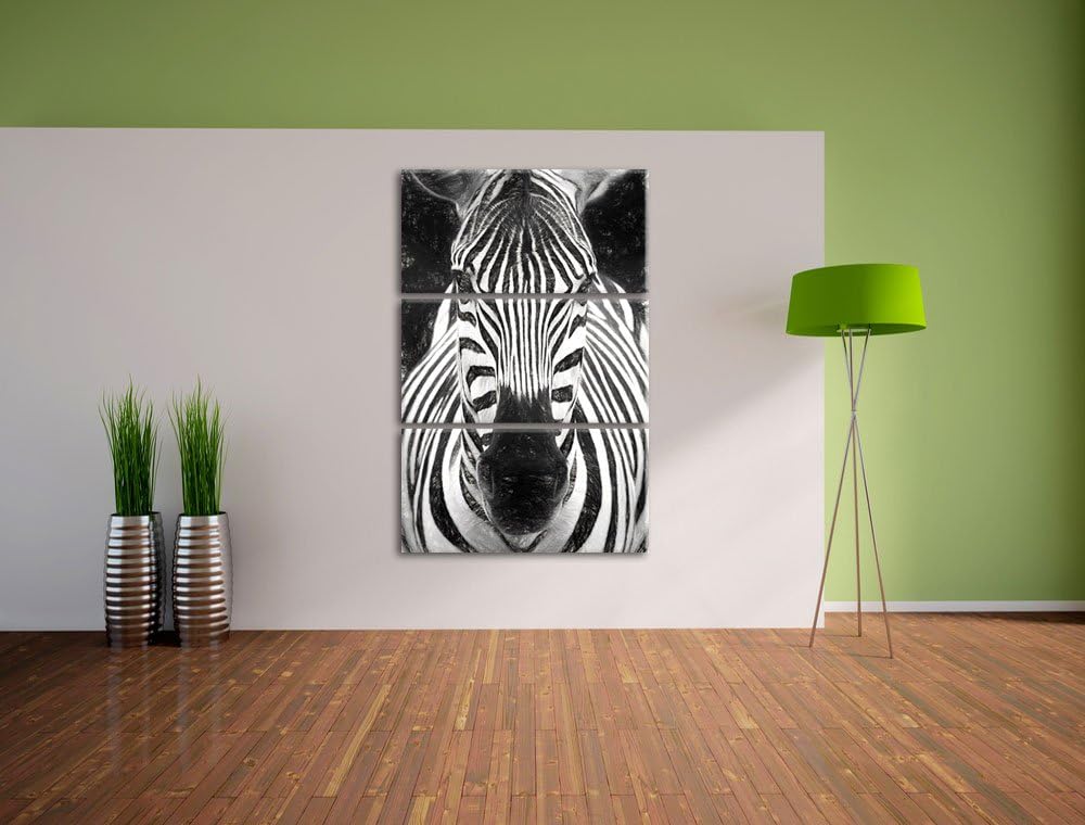 Dark Zebra Porträt Spezial 3-Teiler Leinwandbild 120x80 Bild auf Leinwand, XXL riesige Bilder fertig