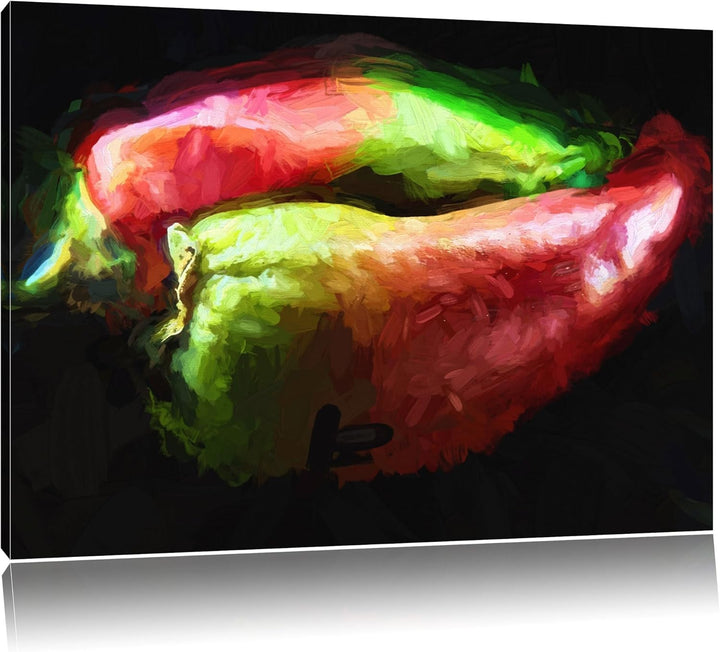 Dark zwei Chilischoten Deluxe Format: 100x70 cm auf Leinwand, XXL riesige Bilder fertig gerahmt mit