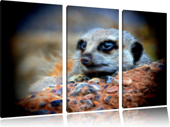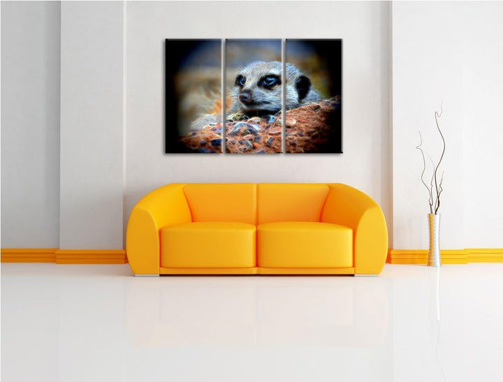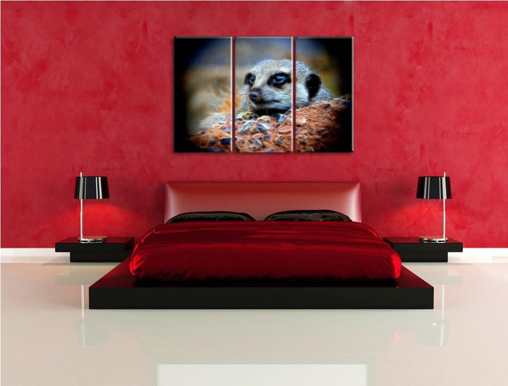 Dark ausgewachsenes Erdmännchen auf Steinboden NewArt 3-Teiler Leinwandbild 120x80 Bild auf Leinwand