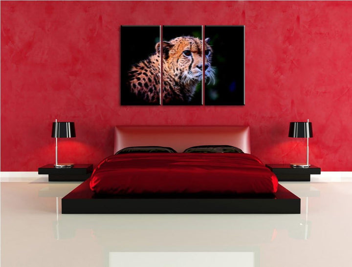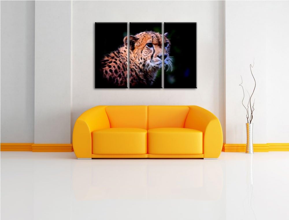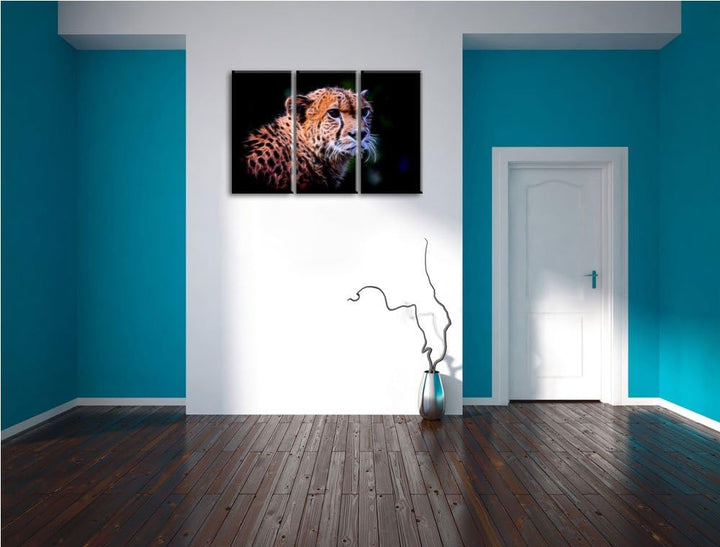 Dark bildschöner Gepard NewArt 3-Teiler Leinwandbild 120x80 Bild auf Leinwand, XXL riesige Bilder fe