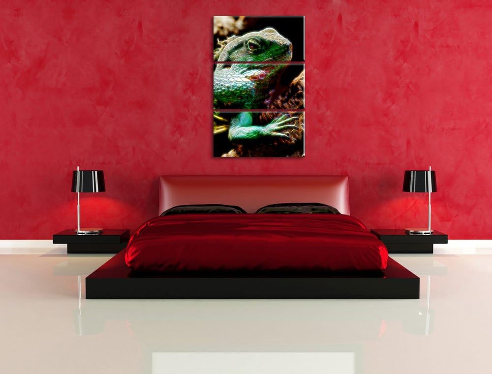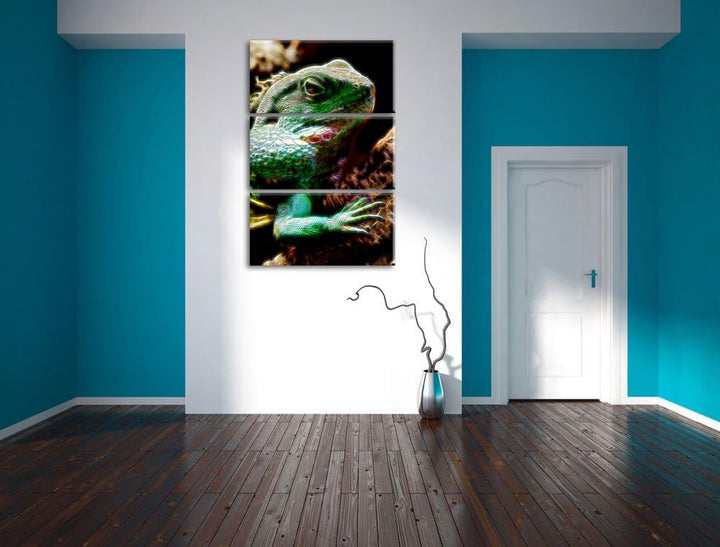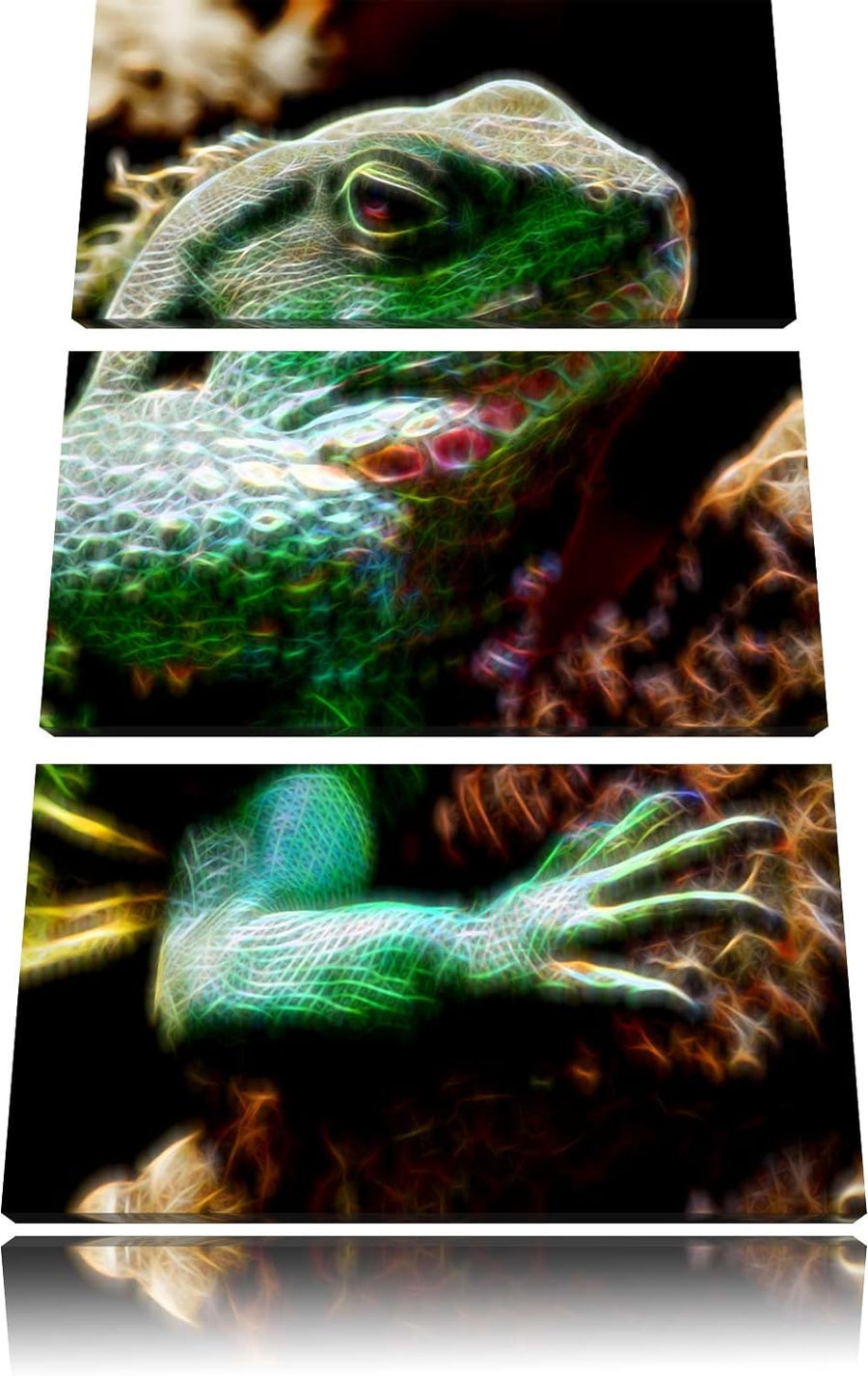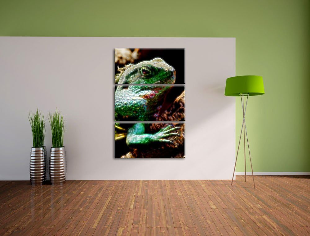 Dark grosses grünes Chamäleon NewArt 3-Teiler Leinwandbild 120x80 Bild auf Leinwand, XXL riesige Bil
