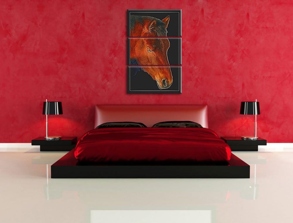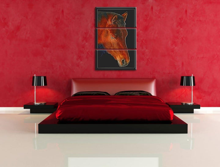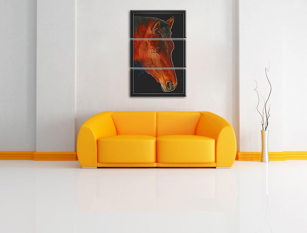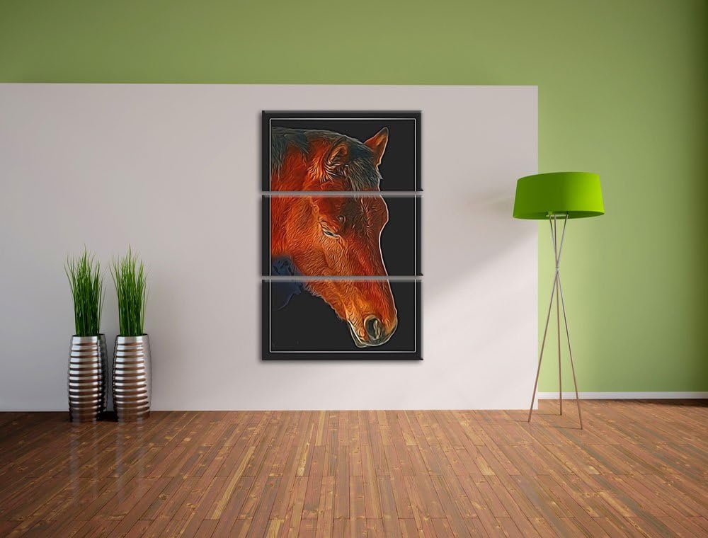 Dark maiestätisches Pferd NewArt 3-Teiler Leinwandbild 120x80 Bild auf Leinwand, XXL riesige Bilder