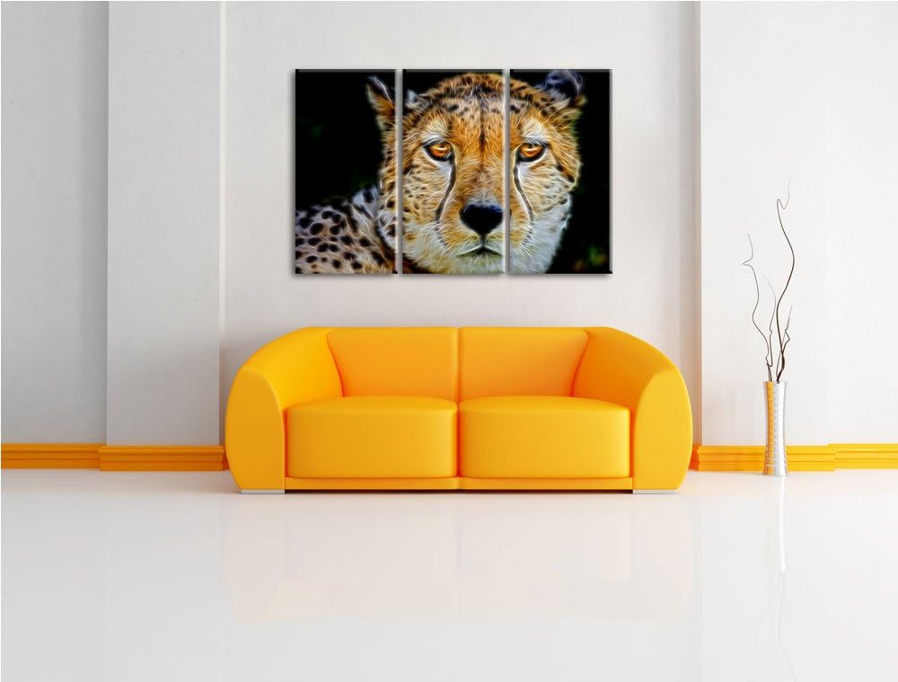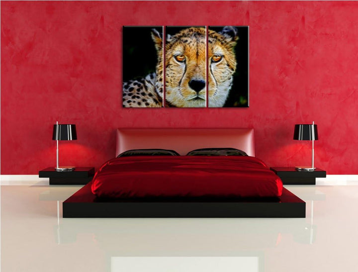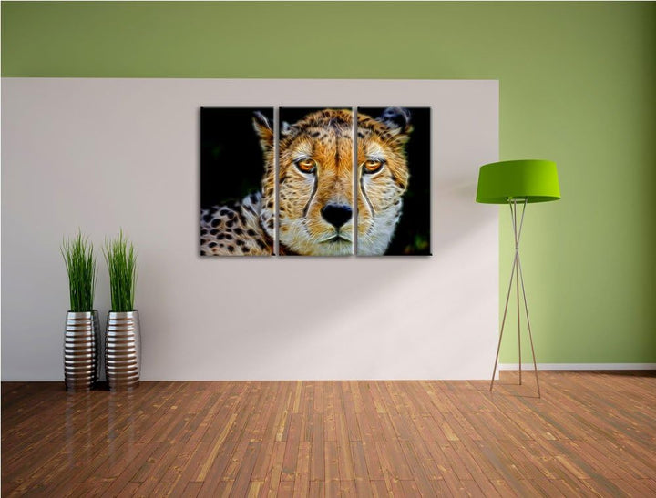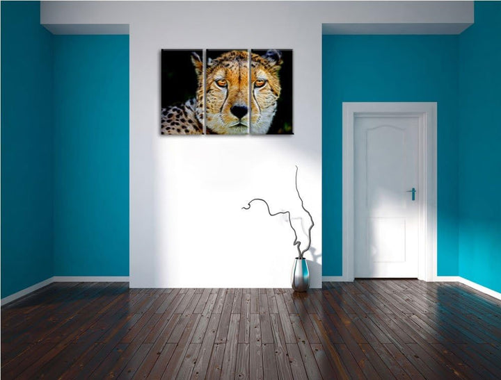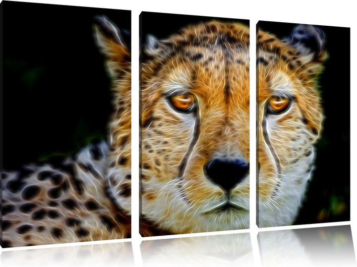 Dark ruhender Gepard NewArt 3-Teiler Leinwandbild 120x80 Bild auf Leinwand, XXL riesige Bilder ferti