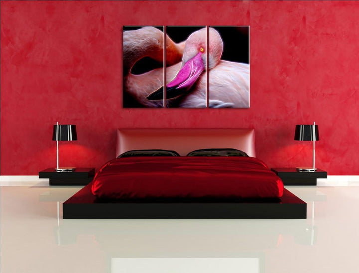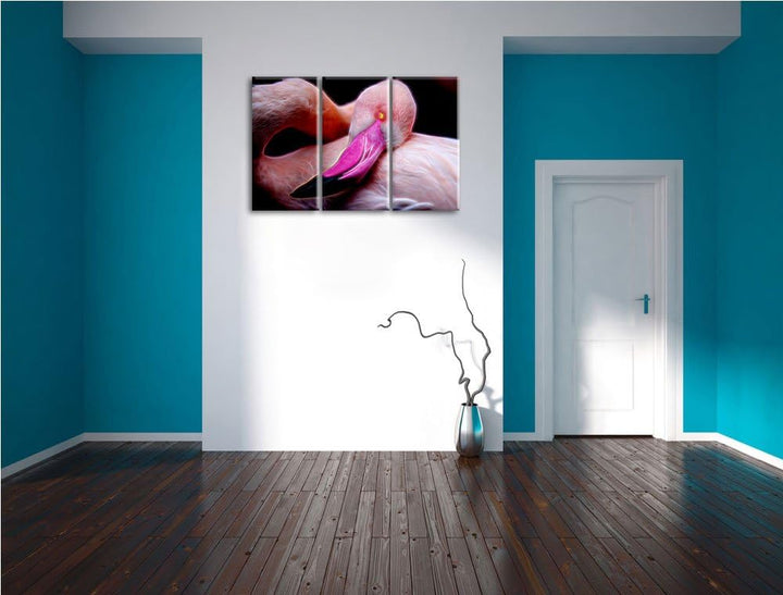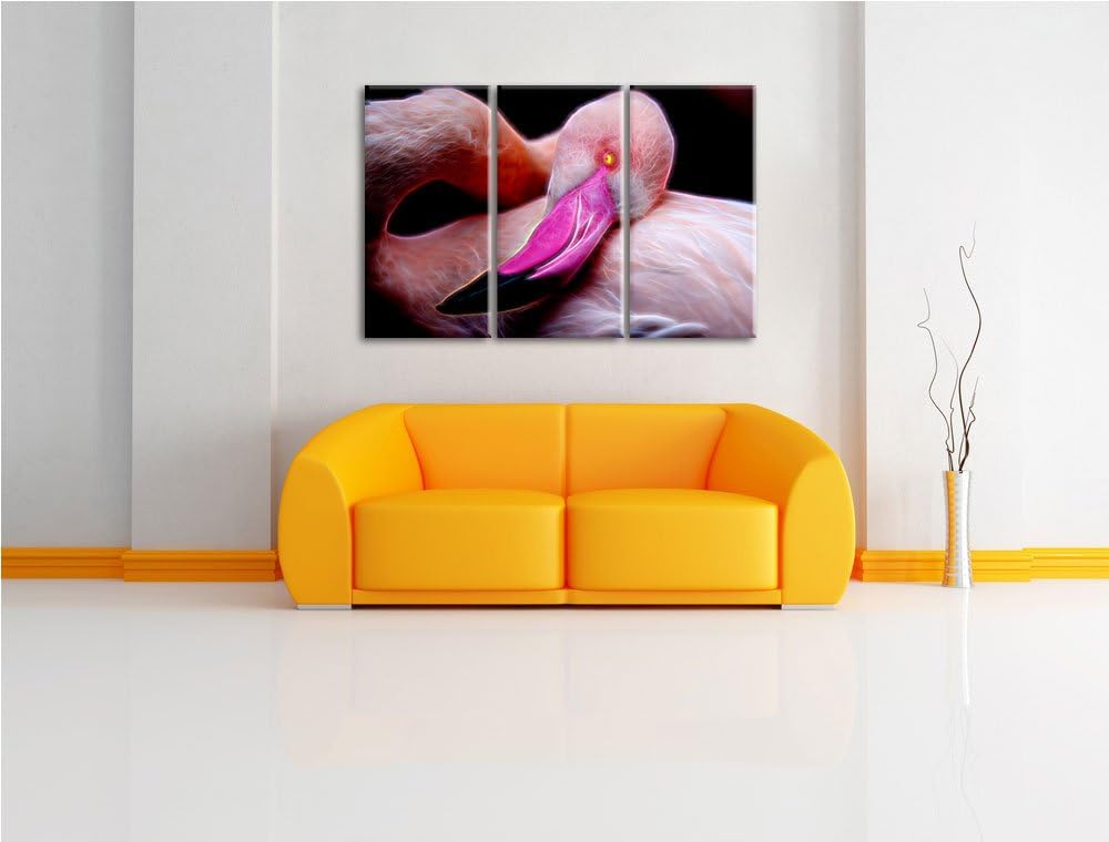 Dark schöner Flamingo Spezial 3-Teiler Leinwandbild 120x80 Bild auf Leinwand, XXL riesige Bilder fer