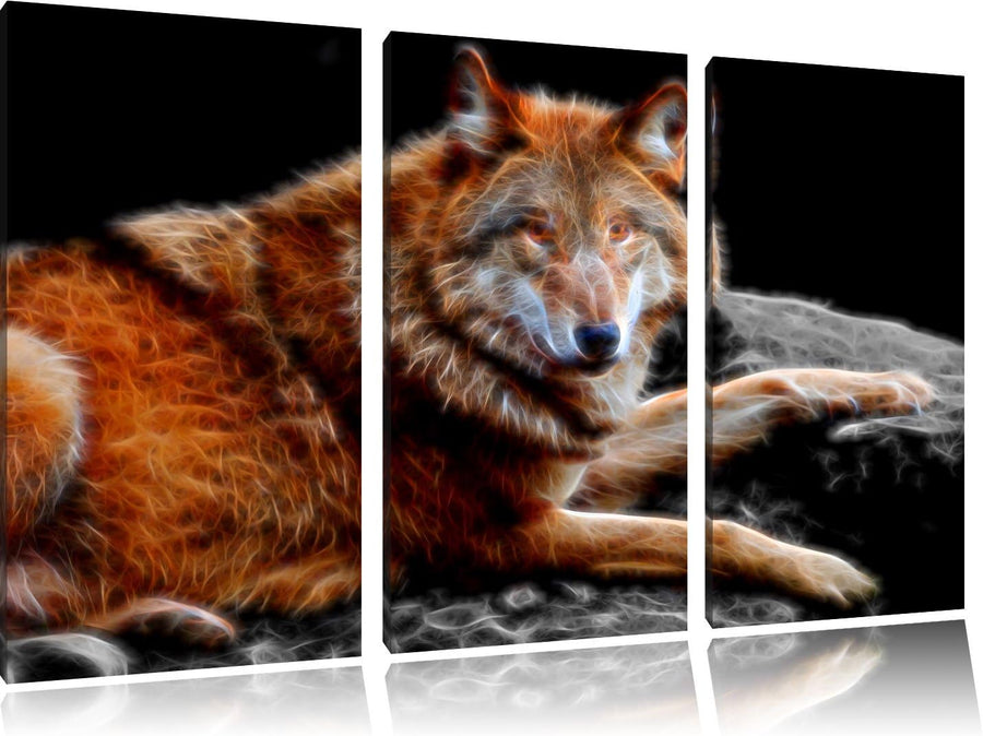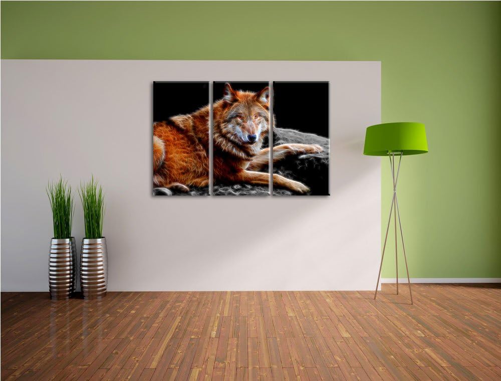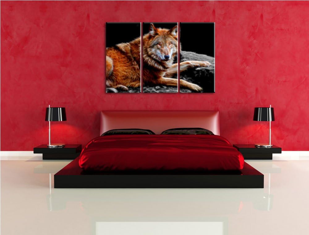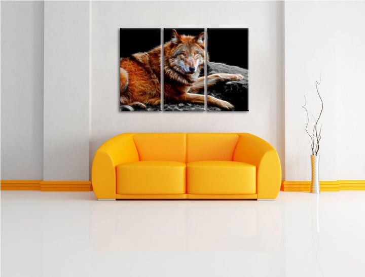 Dark stolzer Wolf auf Stein schwarz/weiss Deluxe 3-Teiler Leinwandbild 120x80 Bild auf Leinwand, XXL