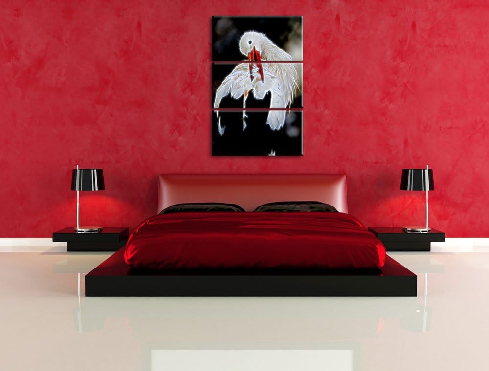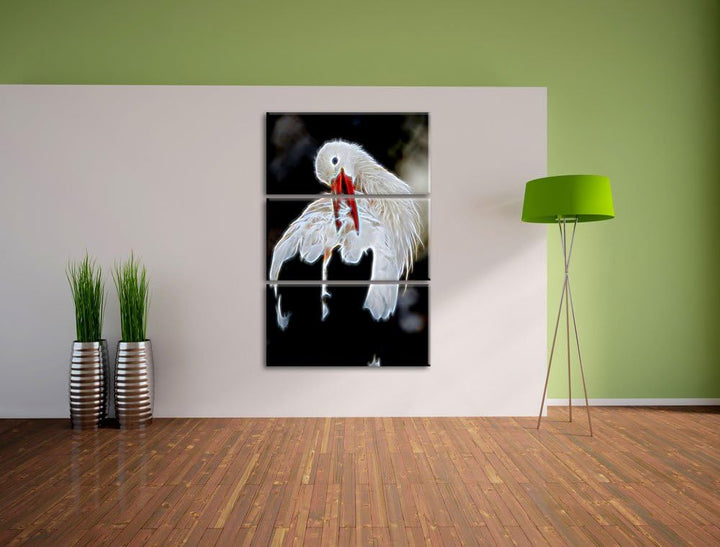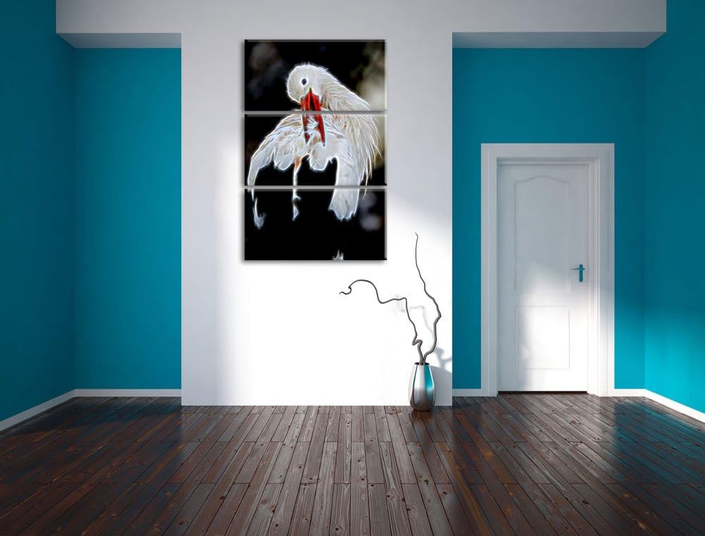 Dark Storch putzt sich Spezial 3-Teiler Leinwandbild 120x80 Bild auf Leinwand, XXL riesige Bilder fe