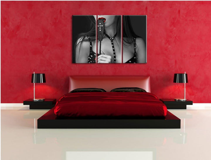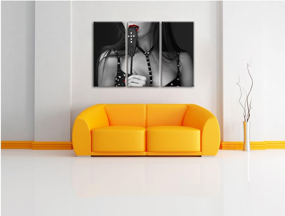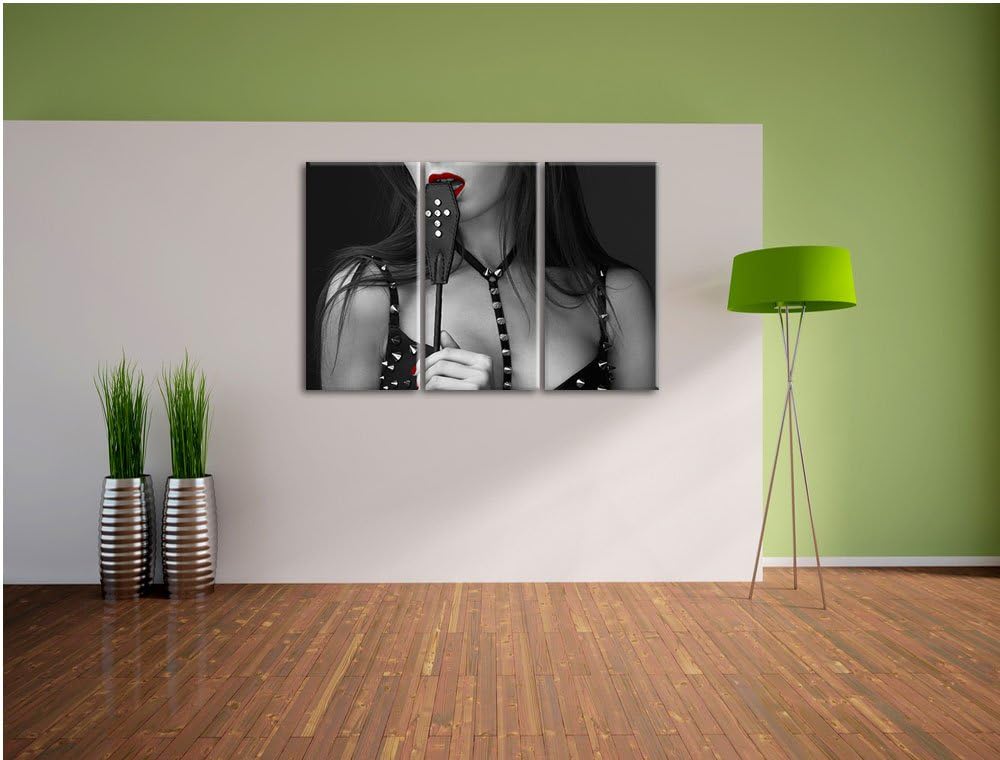 Dark Verführerische Frau mit Peitsche schwarz/weiss 3-Teiler Leinwandbild 120x80 Bild auf Leinwand,