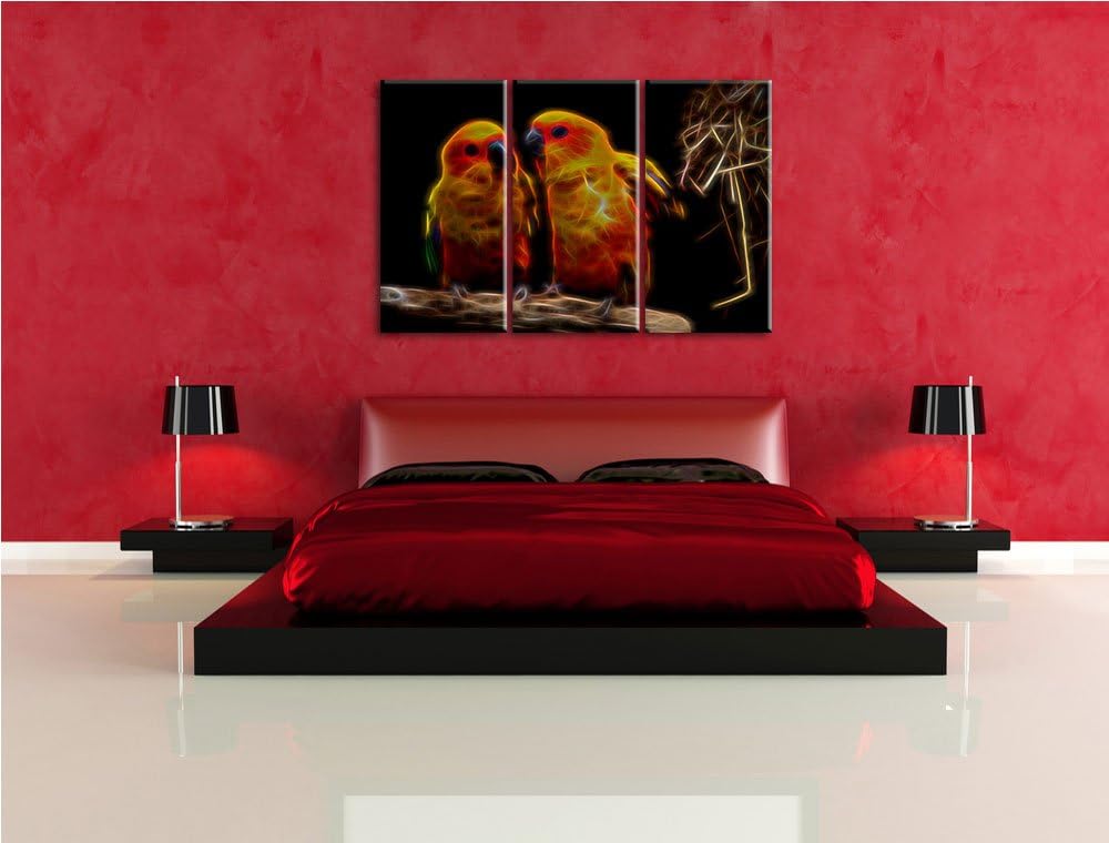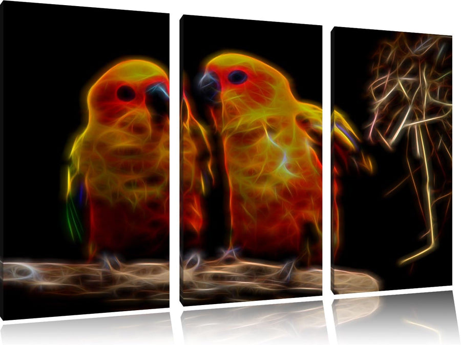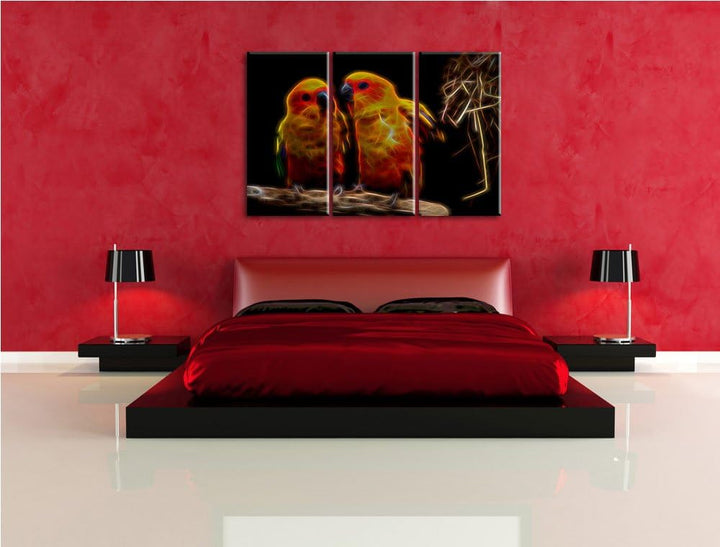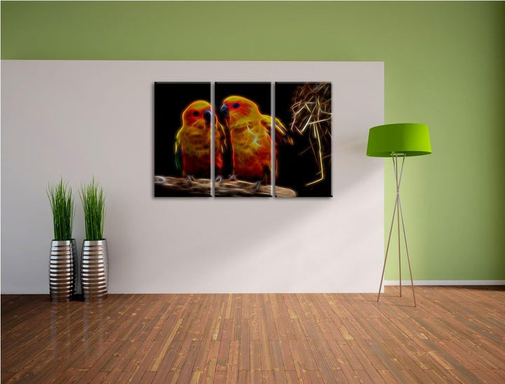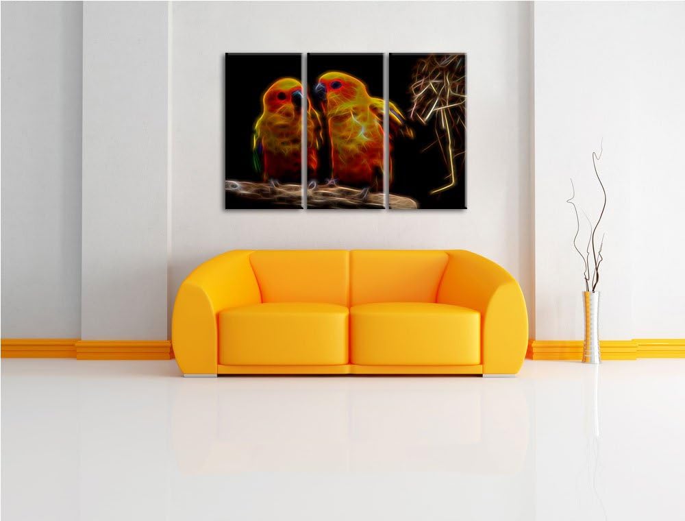Dark zwei farbenfrohe Sonnensittiche NewArt 3-Teiler Leinwandbild 120x80 Bild auf Leinwand, XXL ries