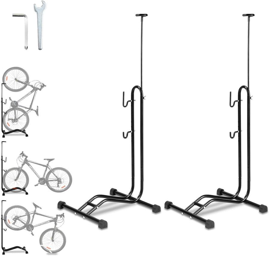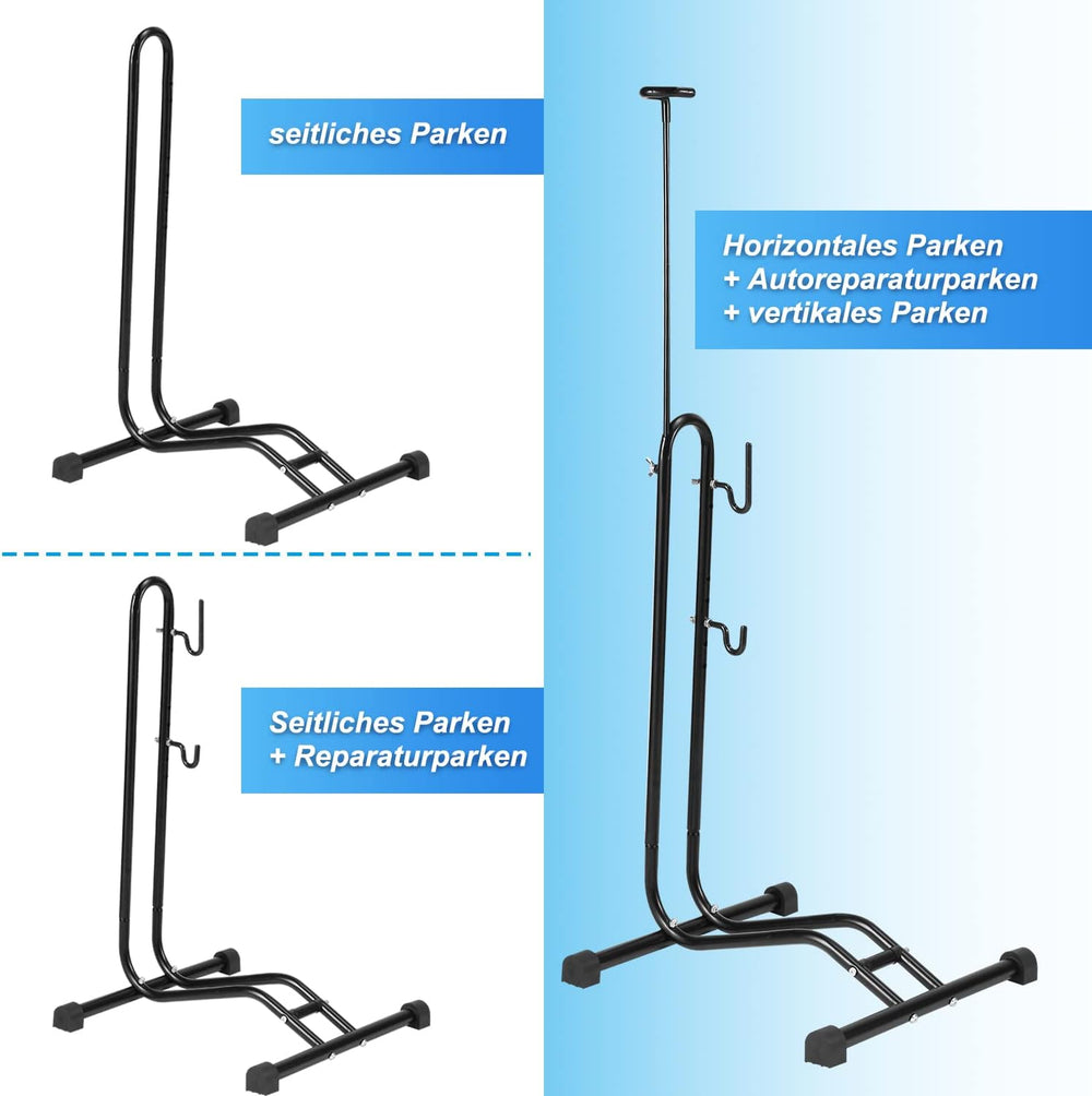 - 🚴♂️【3 IN 1 Fahrradständer】Zum waagerecht und senkrecht Einhängen oder Hineinstellen geeignet.Jeder Fahrradhalter besitzt ein Mass von ca. 42.5 x 43.5 x von 74 bis 117 cm (LxBxH) Höhenverstellbaren, 7-fach Höhenverstellbaren Haltebügel.