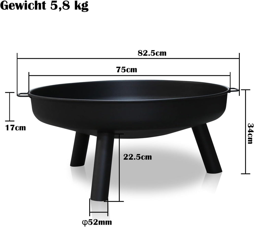 - 【Abmessungen】Der Durchmesser der Feuerstelle beträgt 75 cm, einschliesslich 82,5 cm hinter dem Griff; die Höhe der Feuerstelle beträgt 170 mm, die Höhe der Beine beträgt 340 mm, und die Gesamthöhe der Beine beträgt 340 mm; der Durchmesser