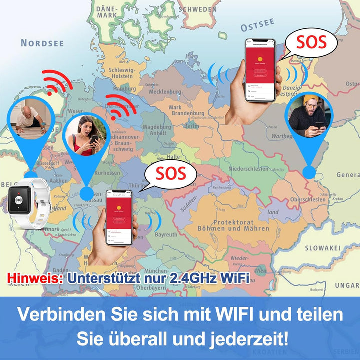 - MIT ANDEREN TEILEN: Sie können mehrere Geräte über die tuya App hinzufügen und sie mit mehreren Personen teilen. Wenn Ihre Eltern den notfallklingel für senioren drücken, werden die Smartphones Ihrer Geschwister den Warnalarm gleichzeitig erhalten,
