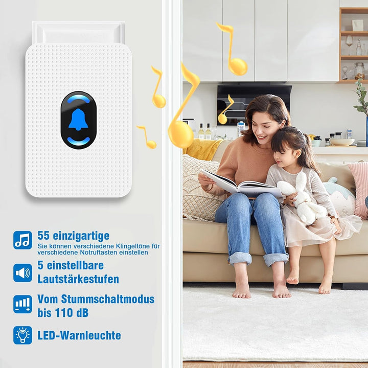 - 【Klingeltöne und auch Lautstärke】Senioren notruf verfügt über 55 beliebte Klingeltöne (u. a. Weltmusik, Tier- und Vogelstimmen und Lebensgeräusche) zur Auswahl, und der Hausnotruf verfügt über 5 Stufen einstellbarer Lautstärke von 0 dB bis