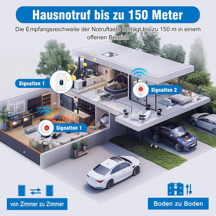 - 【Holen Sie Sich Schnell Und Effizient Hilfe】 Wenn Hilfe benötigt wird, genügt ein einfacher Druck auf den Panikknopf oder den Wachpager, um einen Alarm direkt an den Pager-Empfänger des Betreuers zu senden. Dieses Notfall-Pager-System eignet sich