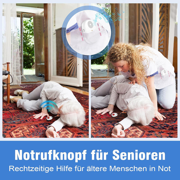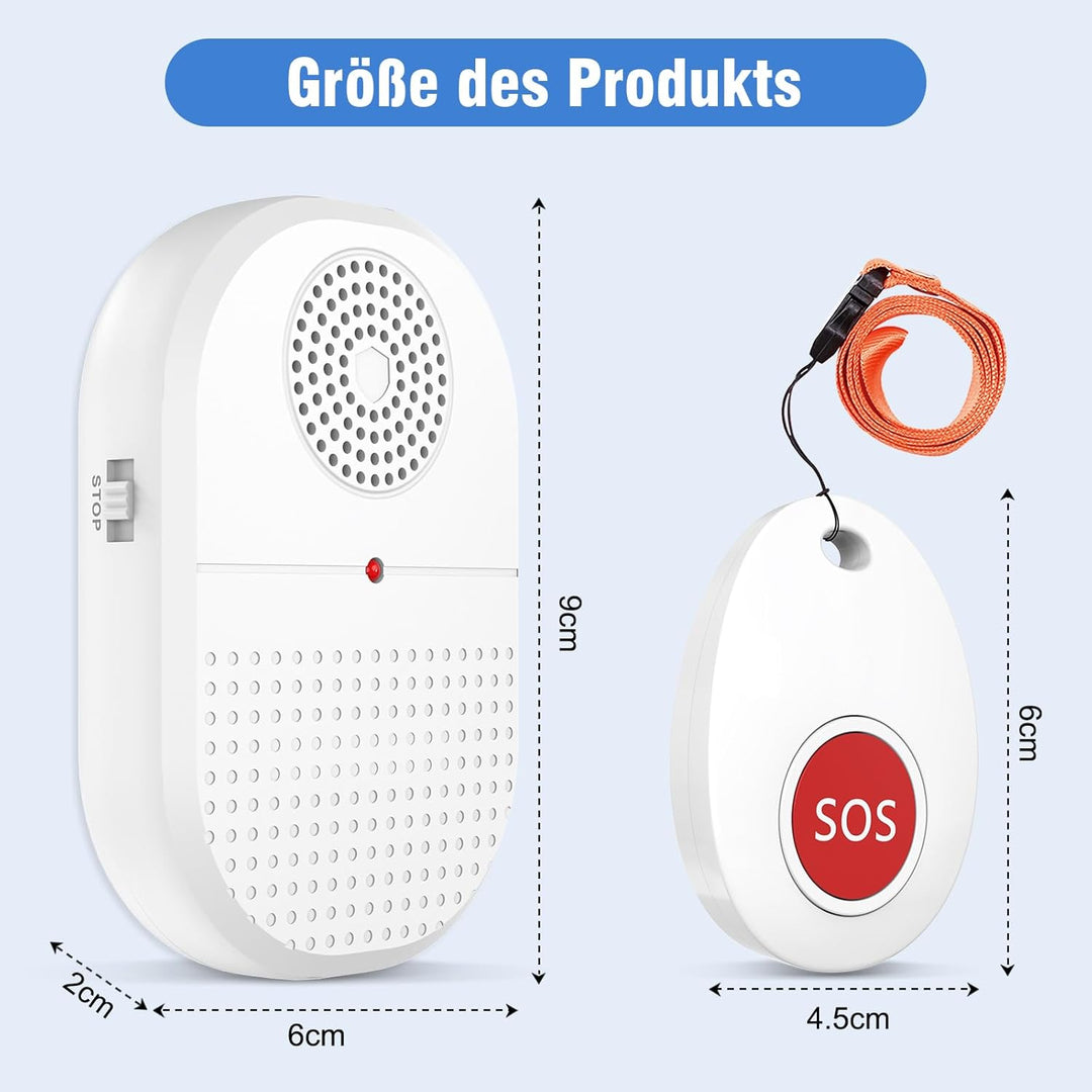 - 【Praktisch und zuverlässig】Notrufknopf für senioren Ideal für den Einsatz als Alarmgeber für diejenigen, die schnell Hilfe benötigen, wie ältere Menschen, Kinder, Behinderte, schwangere Frauen oder Kranke. Drücken Sie einfach die Ruftaste, um